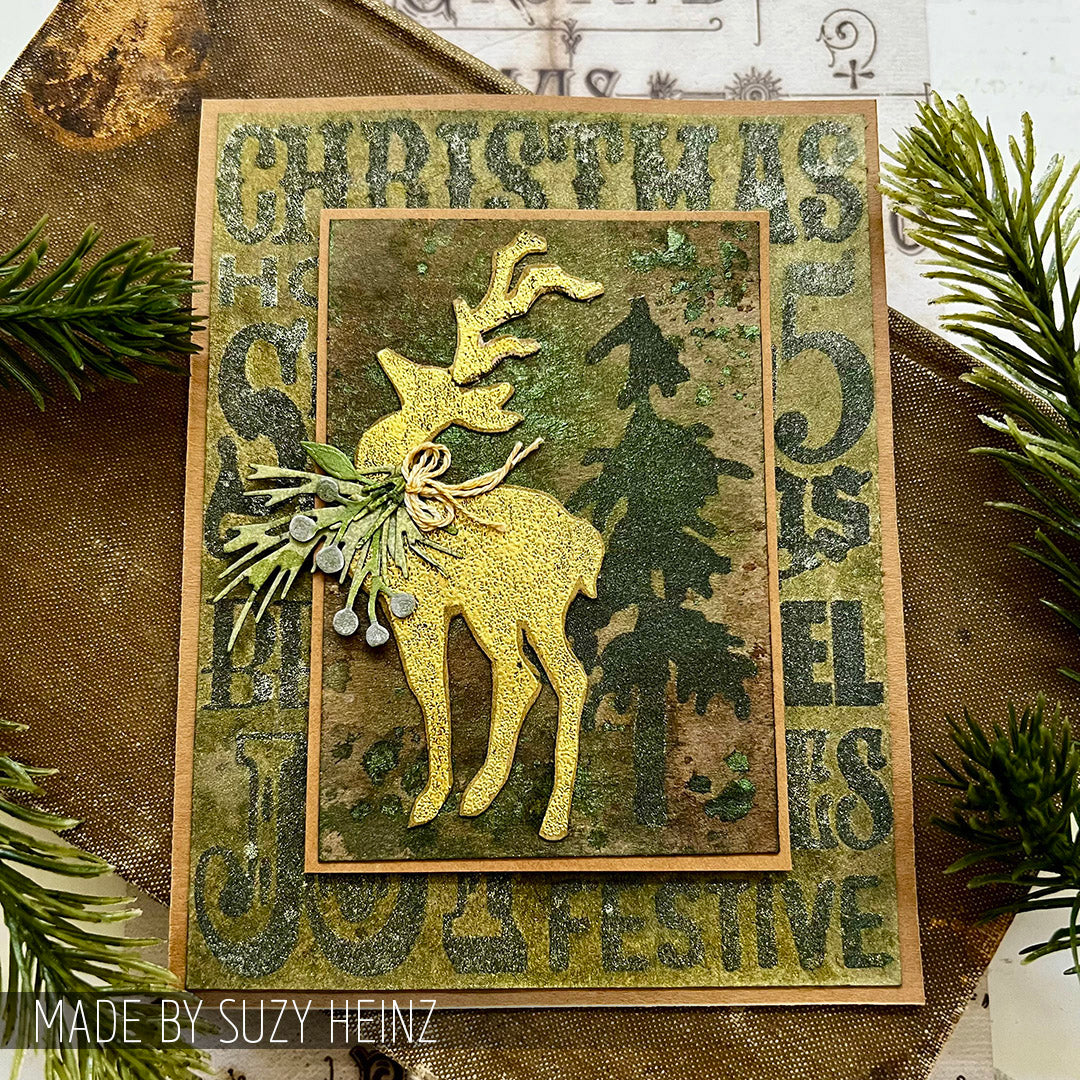 Tim Holtz Cling Rubber Stamps Season's Silhouettes is a set of deeply etched red rubber cling mount stamps that adhere to any clear acrylic block, sold separately. Stamps are mounted on 0.125 inch gray static cling cushion for fine detail. With Images curated by Tim Holtz, this set features a silhouette pine tree, a reindeer, holly leaves, and a snowflake. There is also a large holiday themed Block Text in mixed fonts. Proudly made in the USA by Stampers Anonymous, these high-quality rubber stamps provide crisp, detailed impressions, perfect for mixed media and papercrafting. Stamps come on a 3-hole punched sheet for easy storage. The full stamp sheet measures 7.0 x 8.5 inches.
