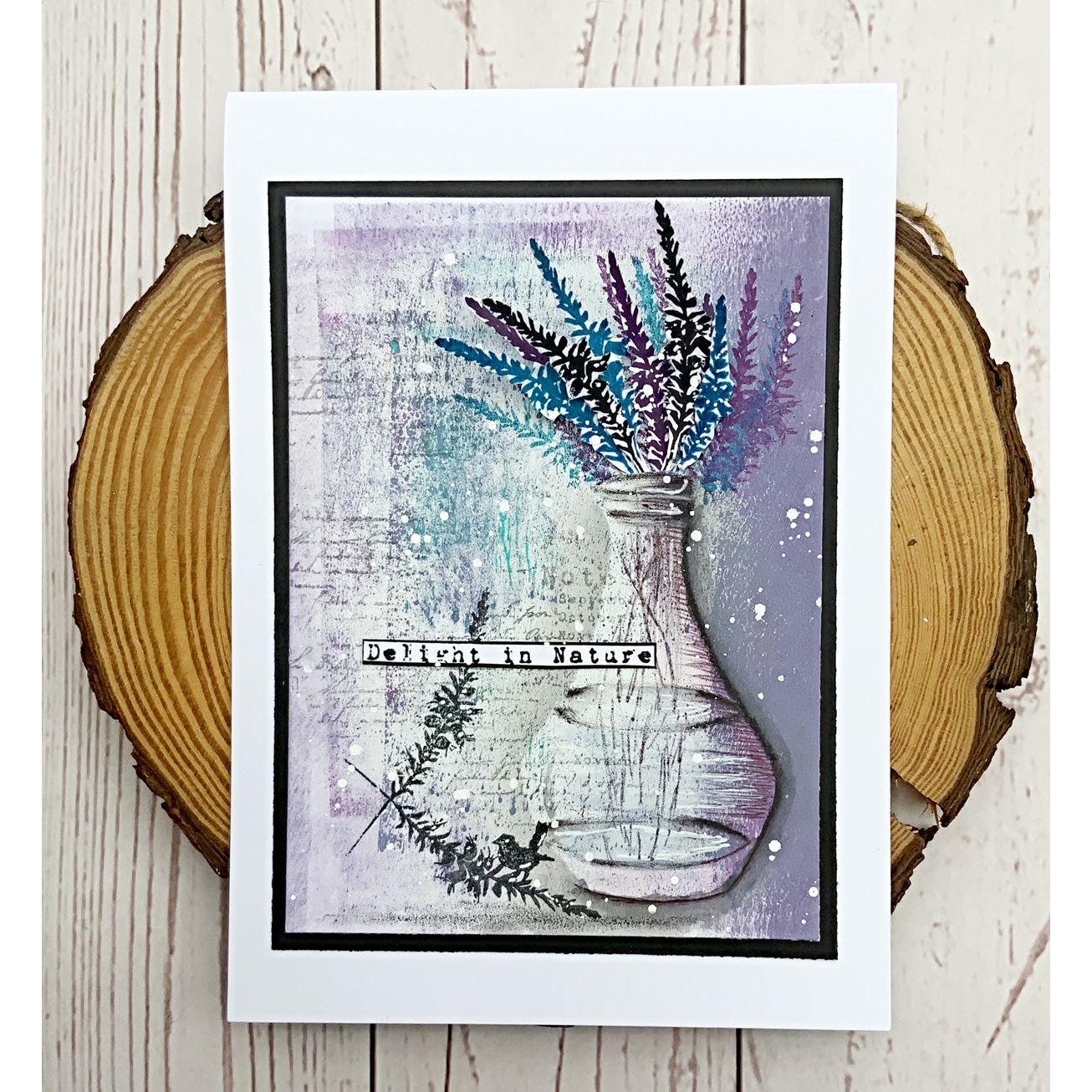 Tracy Evans Boutique Designs Design in Nature A6 Clear Stamps, measuring 4 x 6 inches, has 7 high-quality photopolymer stamps, deeply etched for precise impressions. Included are a stemmed flower, a cornflower bloom, a leaf with sprigs of flowering plants, and sentiments like "A Quiet Place" and "Delight in Nature," along with the words "Catananche" and "Persicaria." Whether you're crafting cards, scrapbook pages, or other projects, these stamps offer versatility and elegance to enhance your creations.