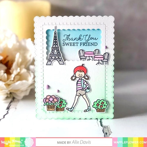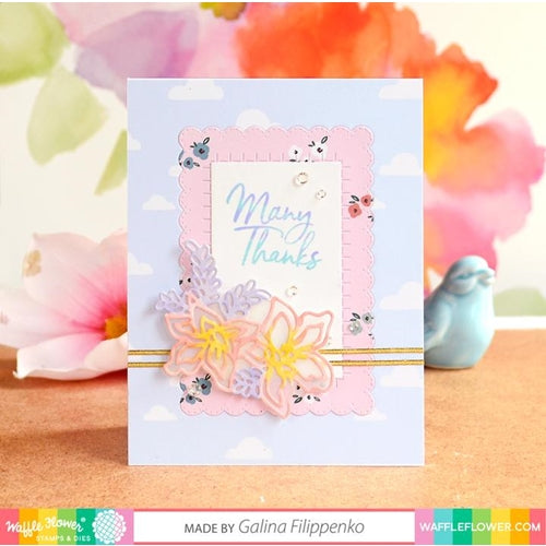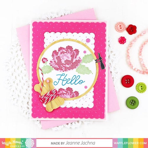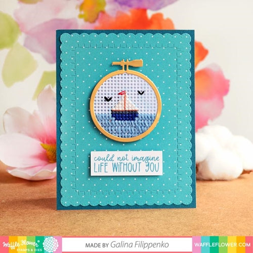 Set of 3 layer dies with scalloped edges and decorative blanket stitched details.