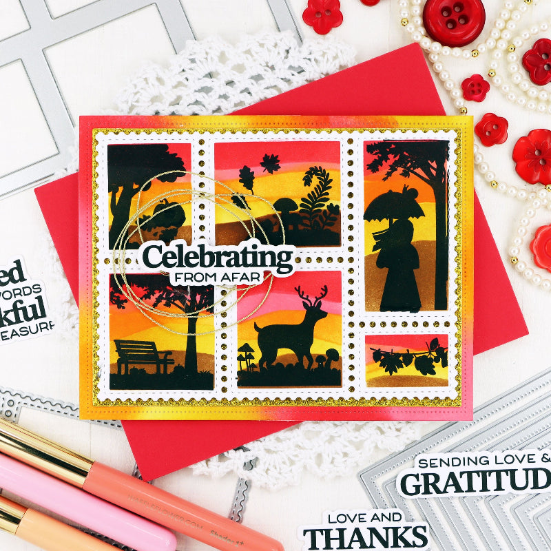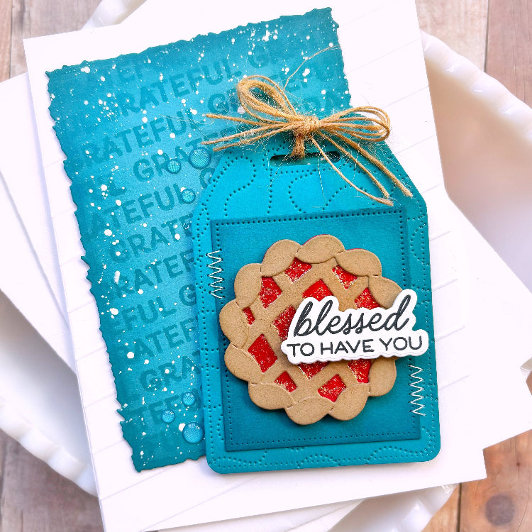 The Waffle Flower Grateful Heart Sentiments Clear Stamps set is 4 x 6 inches and includes 16 mix-and-match phrases for creating heartfelt thank-you cards, Thanksgiving greetings, and everyday notes of appreciation.