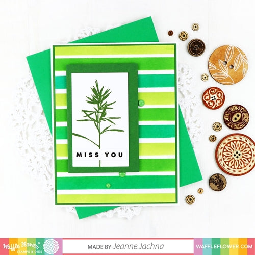 Create classic and elegant cards with the Herb Silhouettes Stamp Set! This set features a beautiful collection of solid silhouette stamps of herbs and stems. These natural looking, detailed stamps are perfect for techniques such as embossing, emboss resist, and watercolor stamping.