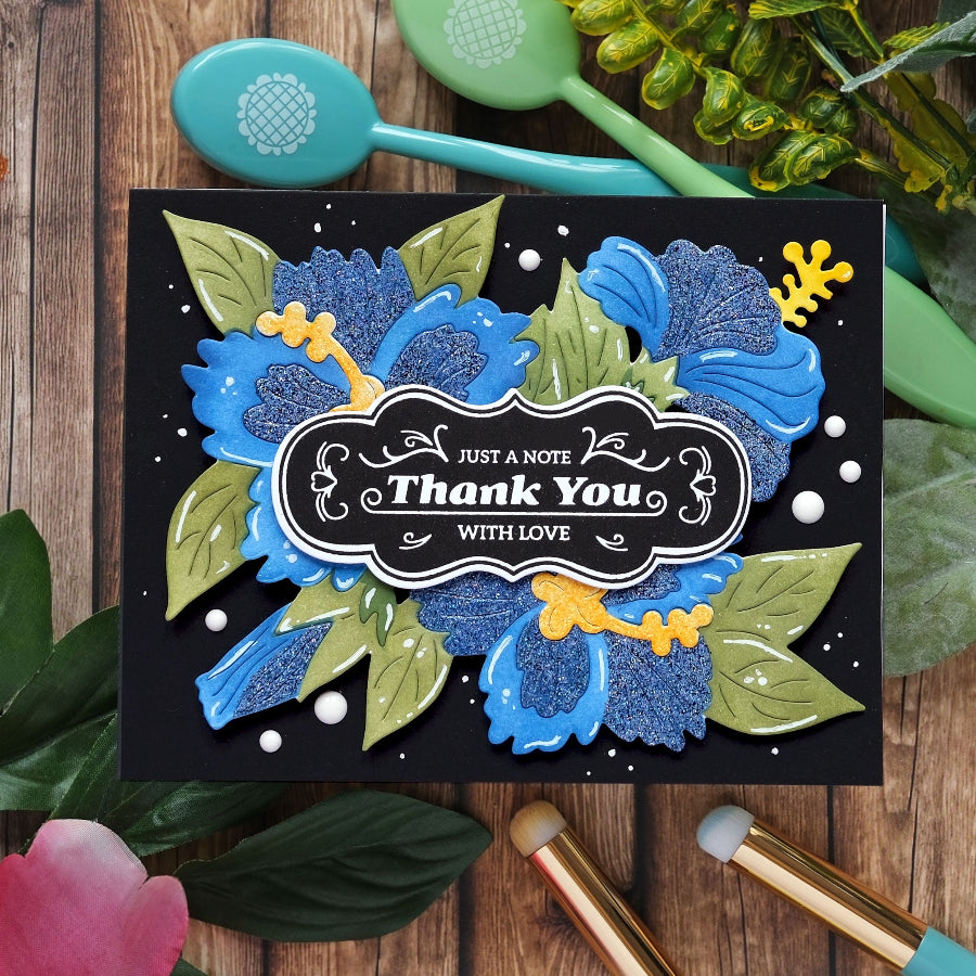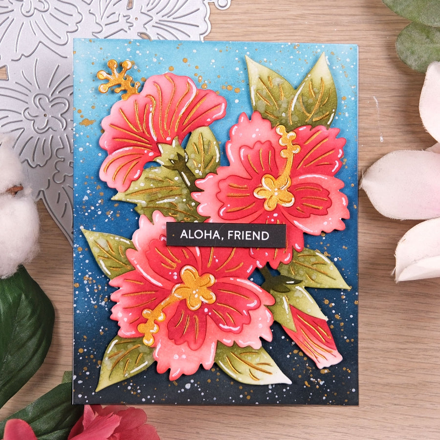 Waffle Flower Hibiscus Cluster Dies is a layering die set featuring a bold cluster of tropical hibiscus blooms, perfect for adding island-inspired charm to your projects. Each flower and leaf includes detailed cutlines for added texture. Two separate flower centers are included to layer over the bottom blooms, covering imperfections when used with the coordinating Hibiscus Cluster Stencils 422193, sold separately.