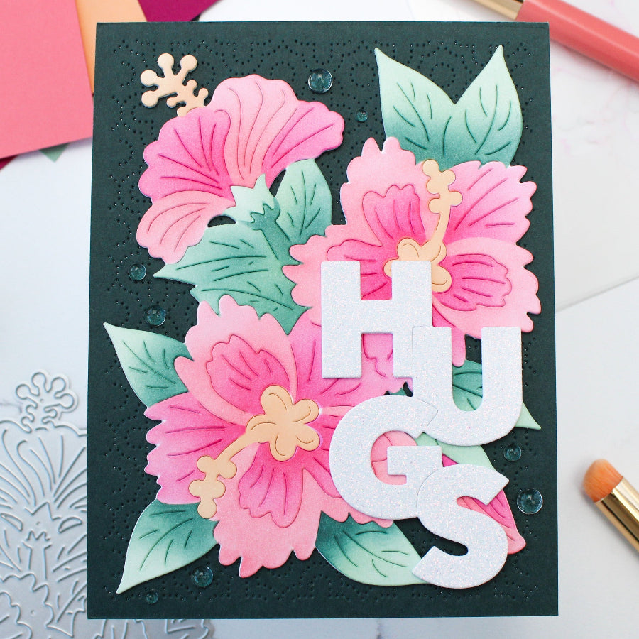 Waffle Flower Hibiscus Cluster Stencils are designed to coordinate with the Hibiscus Cluster Dies 422194, sold separately. This 5.25 x 6.5 inch set includes 4 layering stencils that help you add smooth shading and vibrant color to the flowers and leaves. Use your favorite inks to bring the design to life, then layer the die-cut flower centers on top for added dimension.