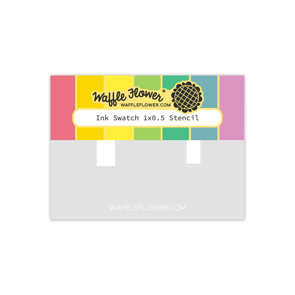 Waffle Flower Ink Swatch 1 x 0.5 Inch Stencil is designed to simplify swatching with the coordinating Ink Swatch 1 x 0.5 Die 422188, sold separately. Use it with your Grip Mat to keep die-cut labels in place for smooth, mess-free ink blending. This 3.875 x 5.25 inch stencil includes two openings: