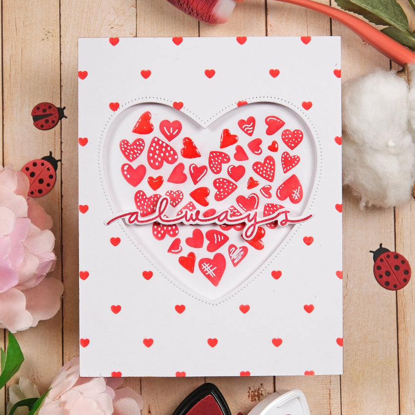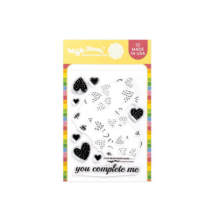 Waffle Flower Inlaid Hearts Detail Clear Stamps is a 3 x 4 inch clear stamp set containing nine stamps designed to add tiny decorative details to your heart shapes. Use this set alongside the Inlaid Hearts Die-n-Stencil 422318, sold separately, to enhance your inlaid designs, or use the small heart images on their own to create fun backgrounds and patterns.