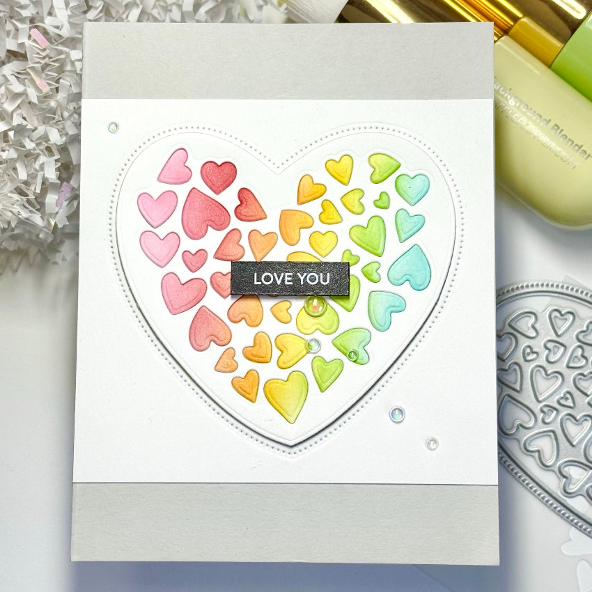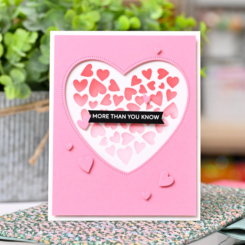 Waffle Flower Inlaid Hearts Die-n-Stencil is a coordinated set of two dies and one stencil designed to work together. The outline heart die features a pierced detail around the entire edge, while the second die cuts a collection of tiny heart confetti pieces that fit perfectly inside the large heart for an inlaid look. The included stencil allows you to add patterns or shading to the tiny hearts before die-cutting. Pair this set with the Inlaid Hearts Detail Clear Stamps 422319, sold separately, to add even more intricate details to your designs.