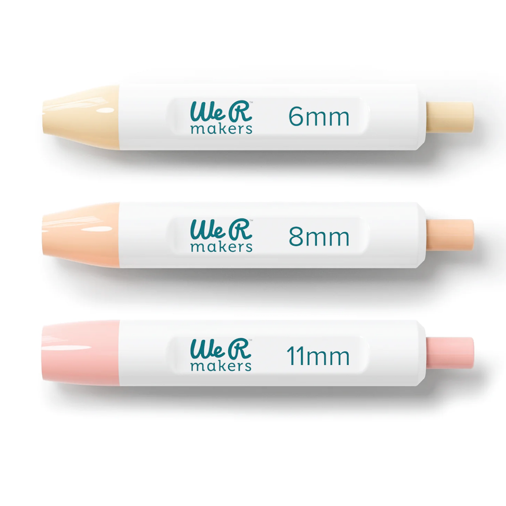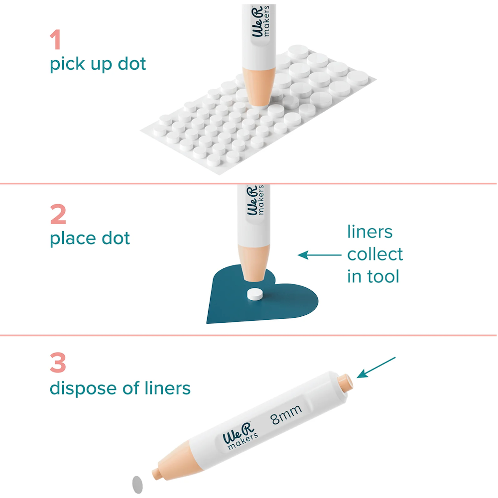 Add flawless dimension without the sticky struggle using the We R Makers Foam Dot Setter Kit. This clever tool set takes the frustration out of placing tiny adhesive foam dots by letting you pick up, position, and press each dot with precision—no sticky fingers, tweezers, or static cling. Spent liners are neatly stored inside the tool as you work and can be ejected all at once with a simple click when the chamber is full.