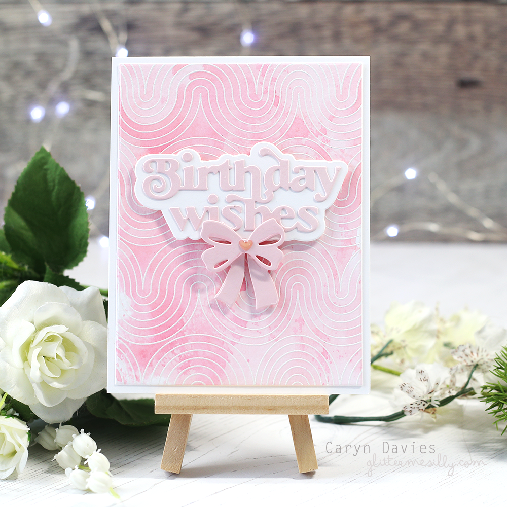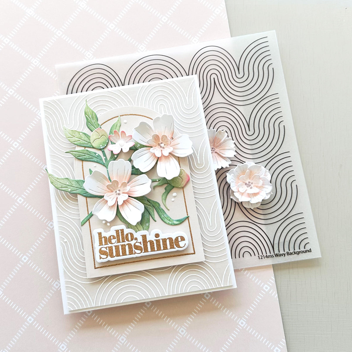The Simon Says Stamp Wavy Background stamp features a repeating pattern of smooth, undulating rows that resemble squished rainbows or groovy waves. This bold, rhythmic design adds movement and a touch of retro flair to your backgrounds, making it perfect for playful, modern, or abstract card designs.