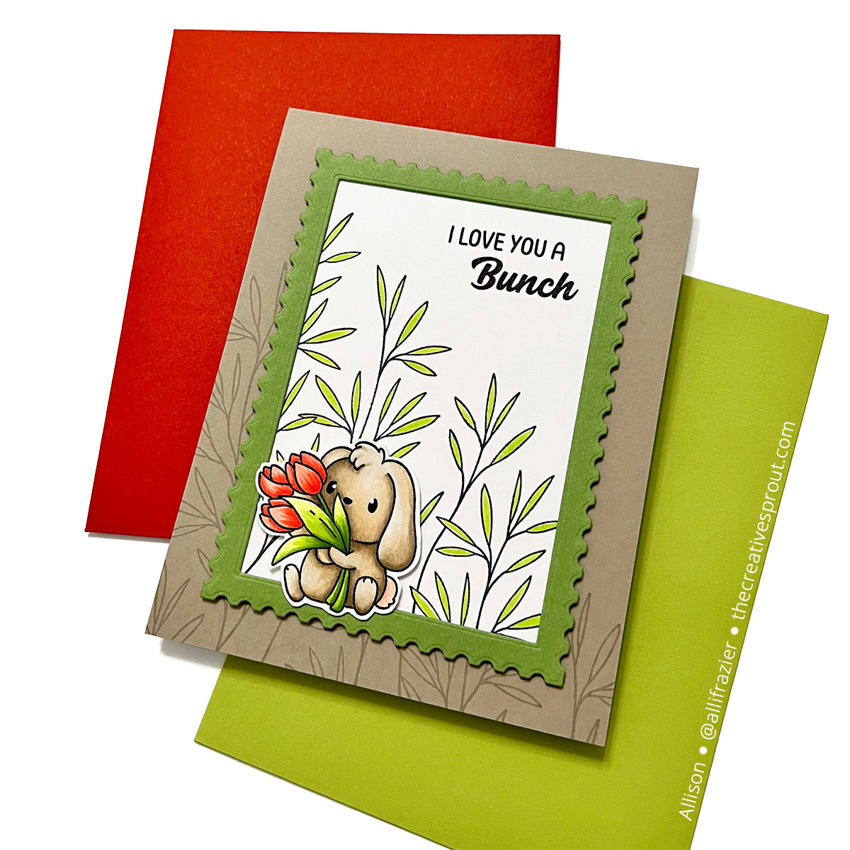 The Simon Says Stamp I Love You a Bunch dies are designed to coordinate with the I Love You a Bunch stamp set, cutting out all of the adorable bunny images, floral elements, and heartfelt sentiments.
