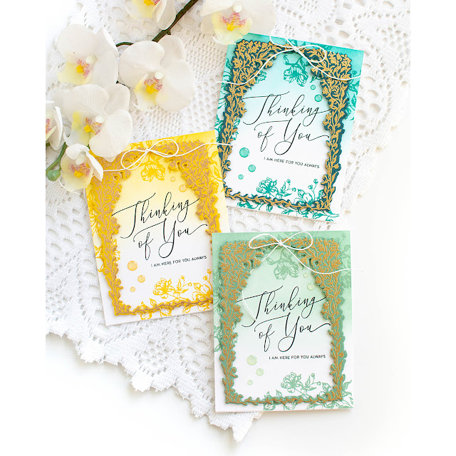 The dies cut out all four intricate floral images as well as the five largest sentiments. This set is ideal for everything from heartfelt cards to elegant journaling pages.