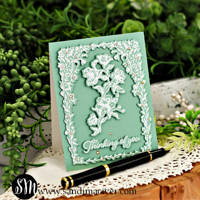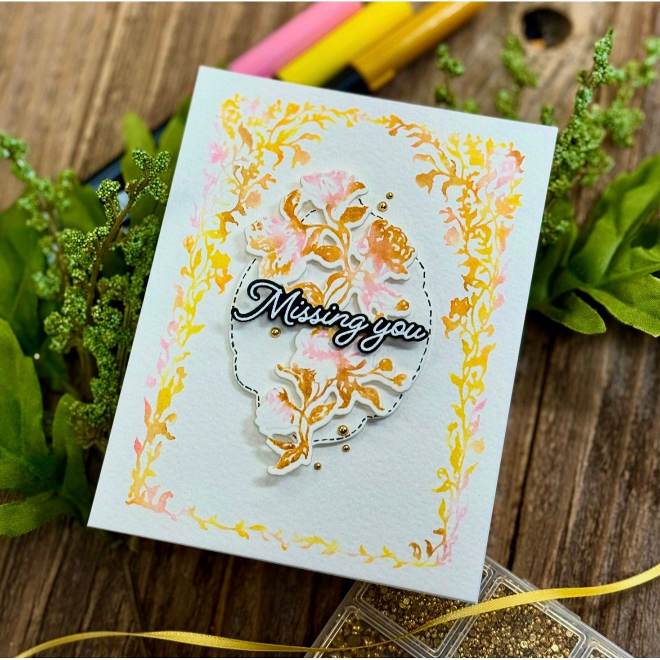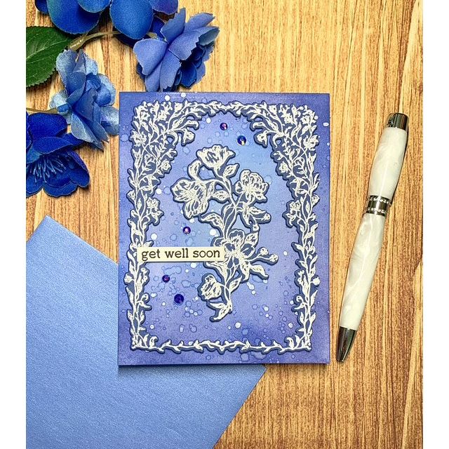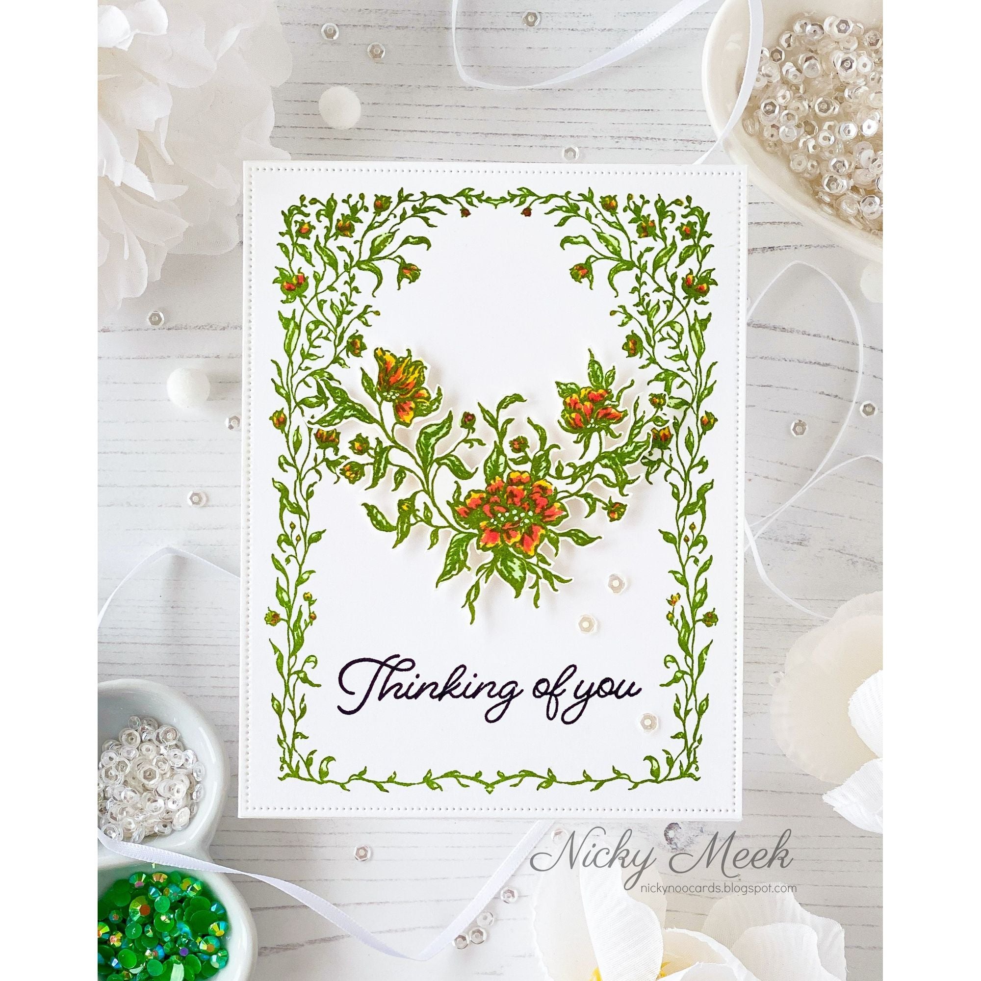 The Simon Says Stamp Flowering Frame stamp and die set features vintage-inspired ivy florals that bring timeless elegance to your projects.