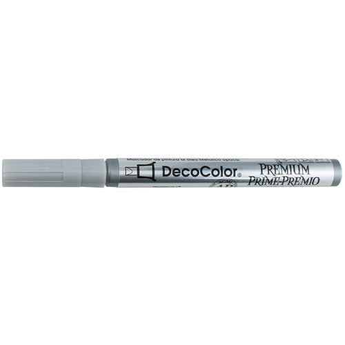 DecoColor by Marvy Uchida Premium Silver Metallic Marker is an opaque oil based paint producing rich metallic finishes, use to highlight designs on wax seals and add definition to crafts.