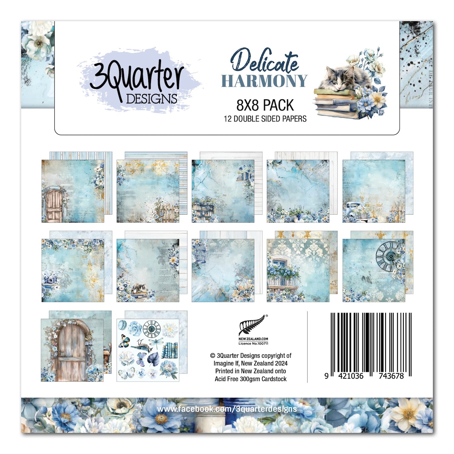 3Quarter Designs Delicate Harmony Paper Pack brings a world of beautiful blue hues and intricate details to your crafting projects. Featuring charming illustrations of stunning florals, stacked books, cameras, vintage cards, collages, butterflies, cookies, clocks, birds, and ephemera, this collection is perfect for adding a touch of nostalgia to any design. This 8 x 8-inch double-sided paper pack includes 12 sheets, making it ideal for cardmaking, scrapbooking, and mixed-media projects that require a timeless and elegant aesthetic.