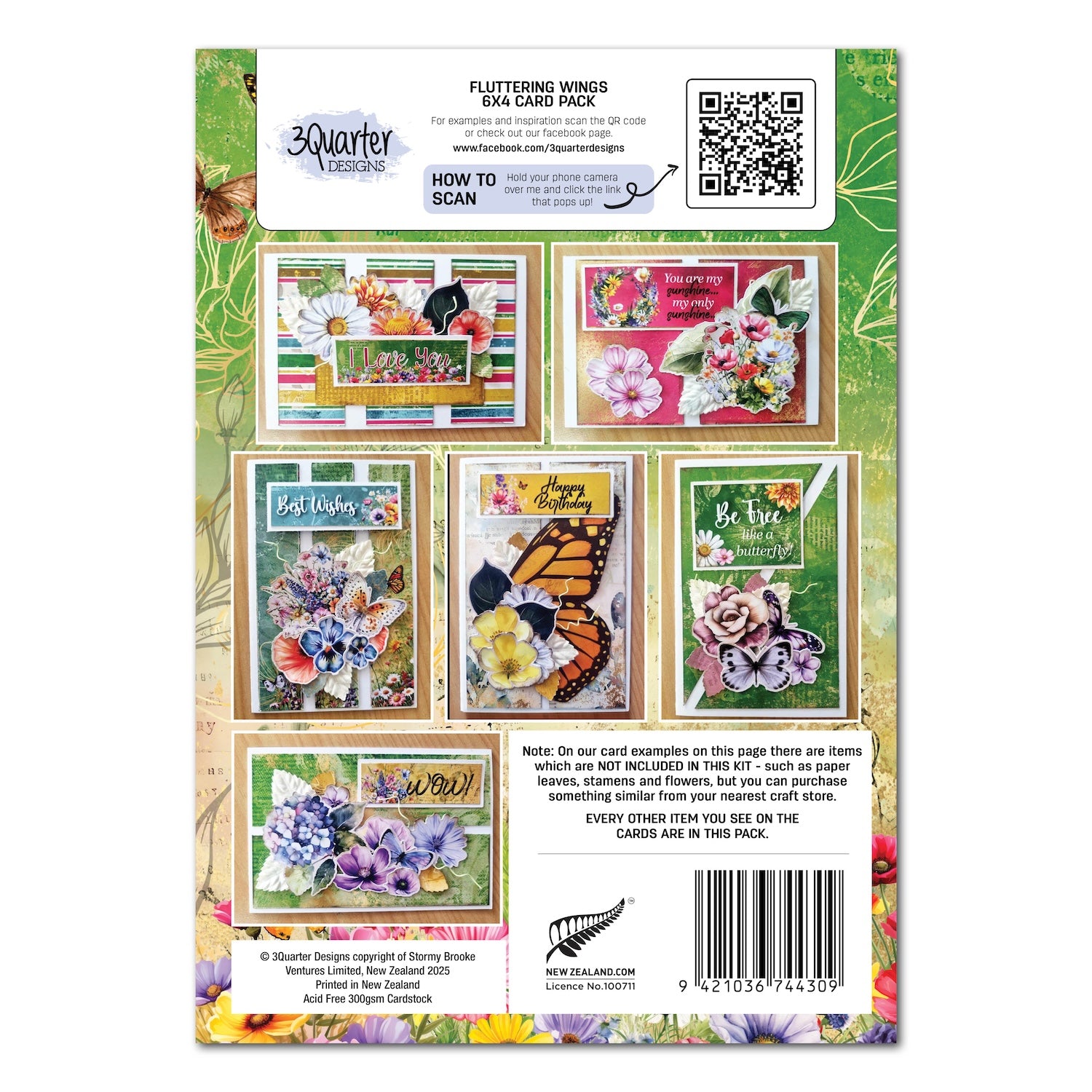 3Quarter Designs Fluttering Wings 6x4 Card Pack is a vibrant and uplifting collection filled with shades of blue, fuchsia, and plenty of butterflies. Bursting with spring florals, bright colors, foliage, and heartfelt sentiments like "Best Wishes," "Happy Birthday," "You’re amazing," and "I love you," this pack radiates joy and creativity.