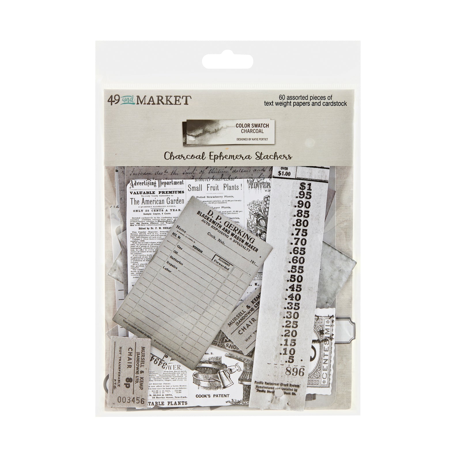 Introducing the 49 and Market Color Swatch Charcoal Ephemera Stickers – a versatile assortment of text weight papers and cardstock pieces designed to enhance your scrapbooking layouts and journals! With 60 assorted pieces in the pack, you'll have a wealth of options for creating multi-dimensional elements with ease.
