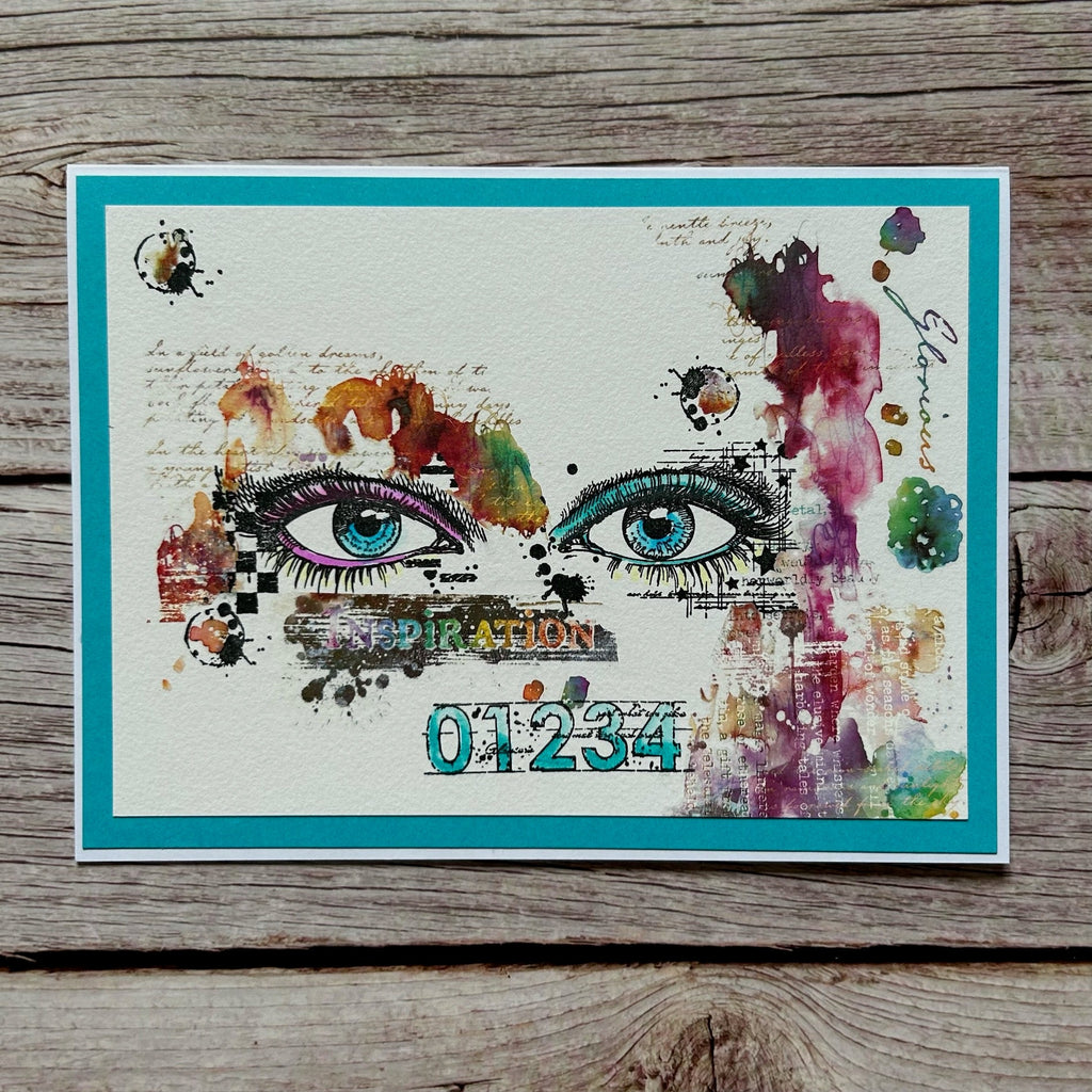 The AALL & Create Bundle includes 1st Sight A8 Clear Stamps 1153 and Eyeful A8 Clear Stamps 1154. They are part of the Popcorn Collection, crafted by Autour De Mwa & Co. Each clear, photopolymer stamp set is 2 x 3 inches and each features a striking design of a large eye with curled lashes. With this bundle, you will have the right and left eye. Accompanied by intricate scratch marks, checkered patterns, stars, and splotches, adding a captivating and artistic flair to your projects.