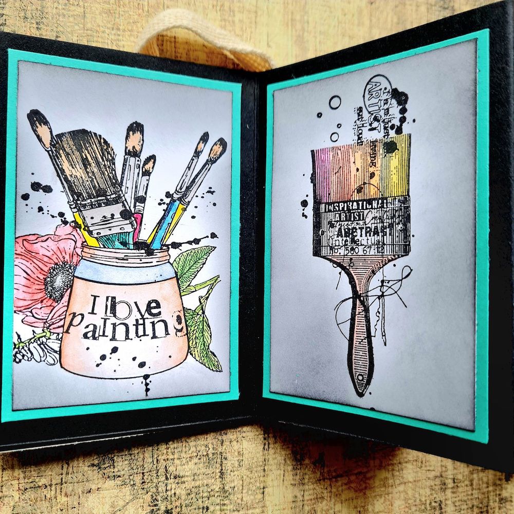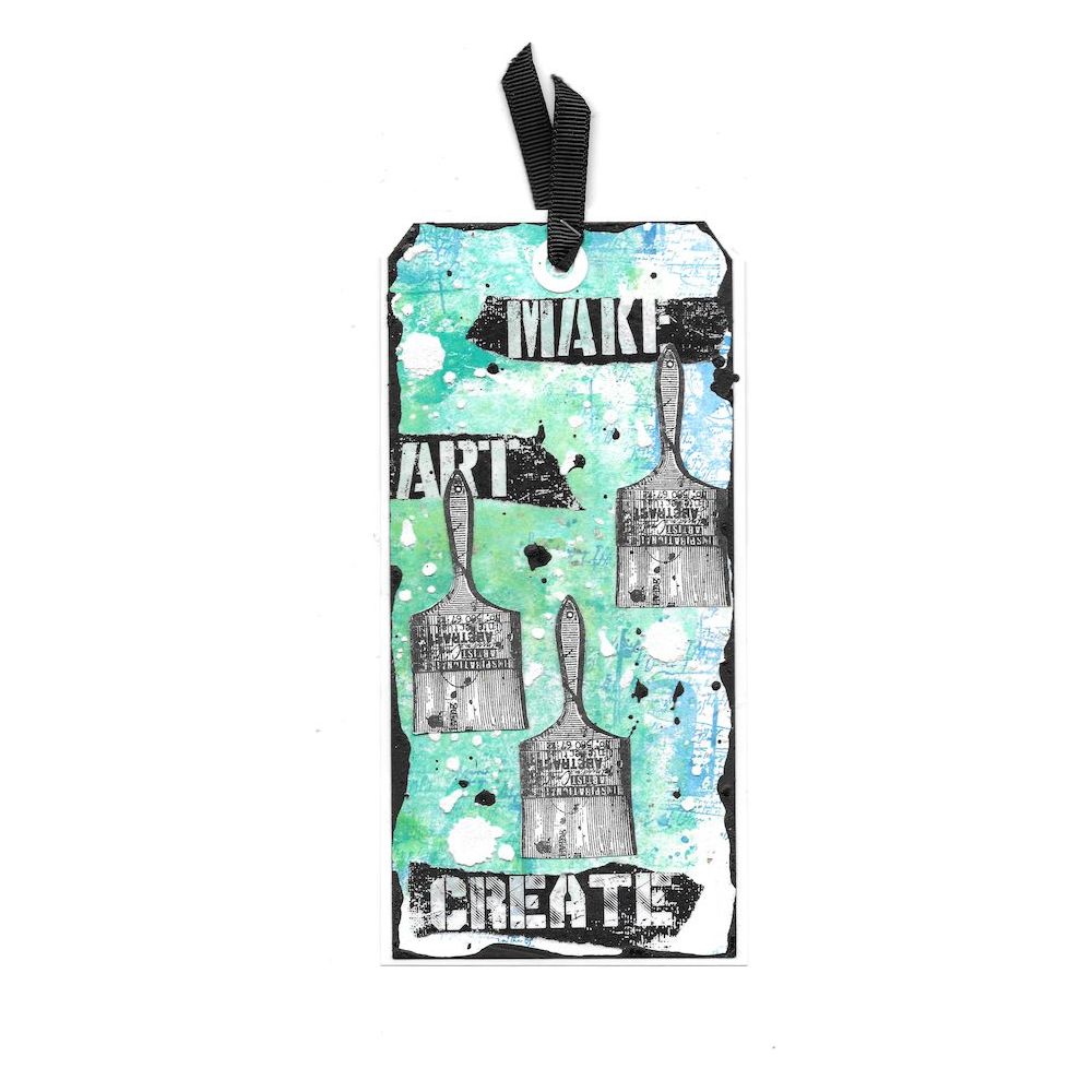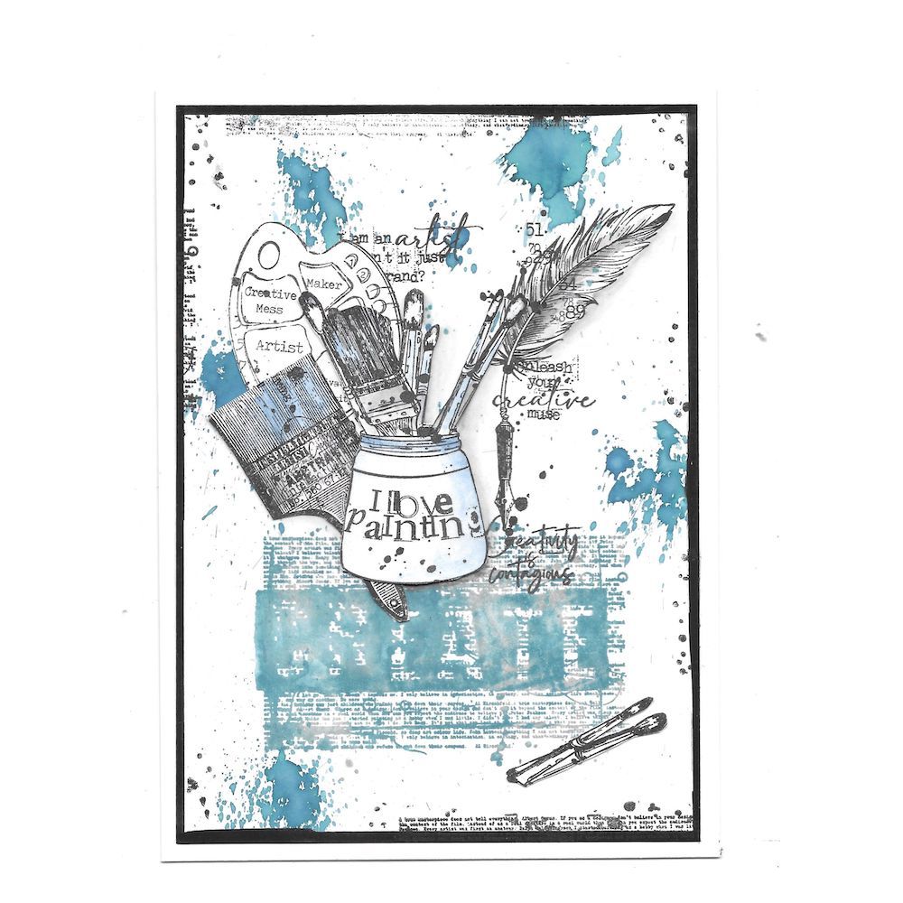 The large paintbrush stamp features numbers and sayings such as "I am just an artist living out loud" and "Inspirational artist and abstract intellectual." This stamp is perfect for those who want to add a touch of creativity and inspiration to their art projects.