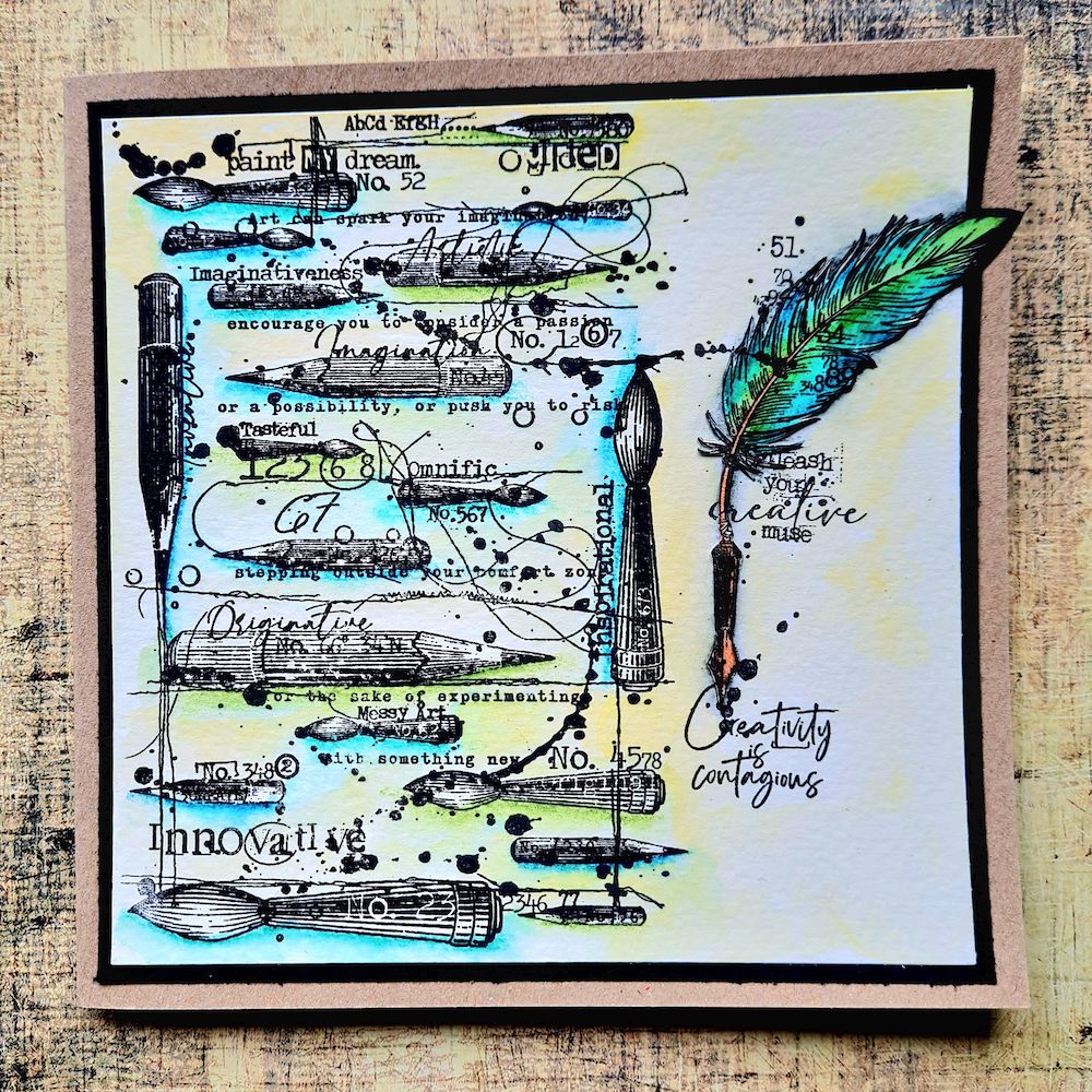 The first stamp features a pen nib, numbers and the phrases "Unleash your Creative Muse" and "Creativity is Contagious." This stamp is perfect for those who want to add a motivational or inspiring touch to their art projects.