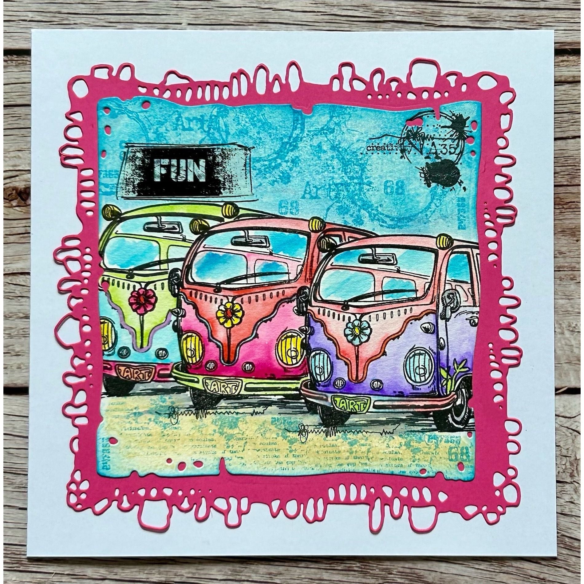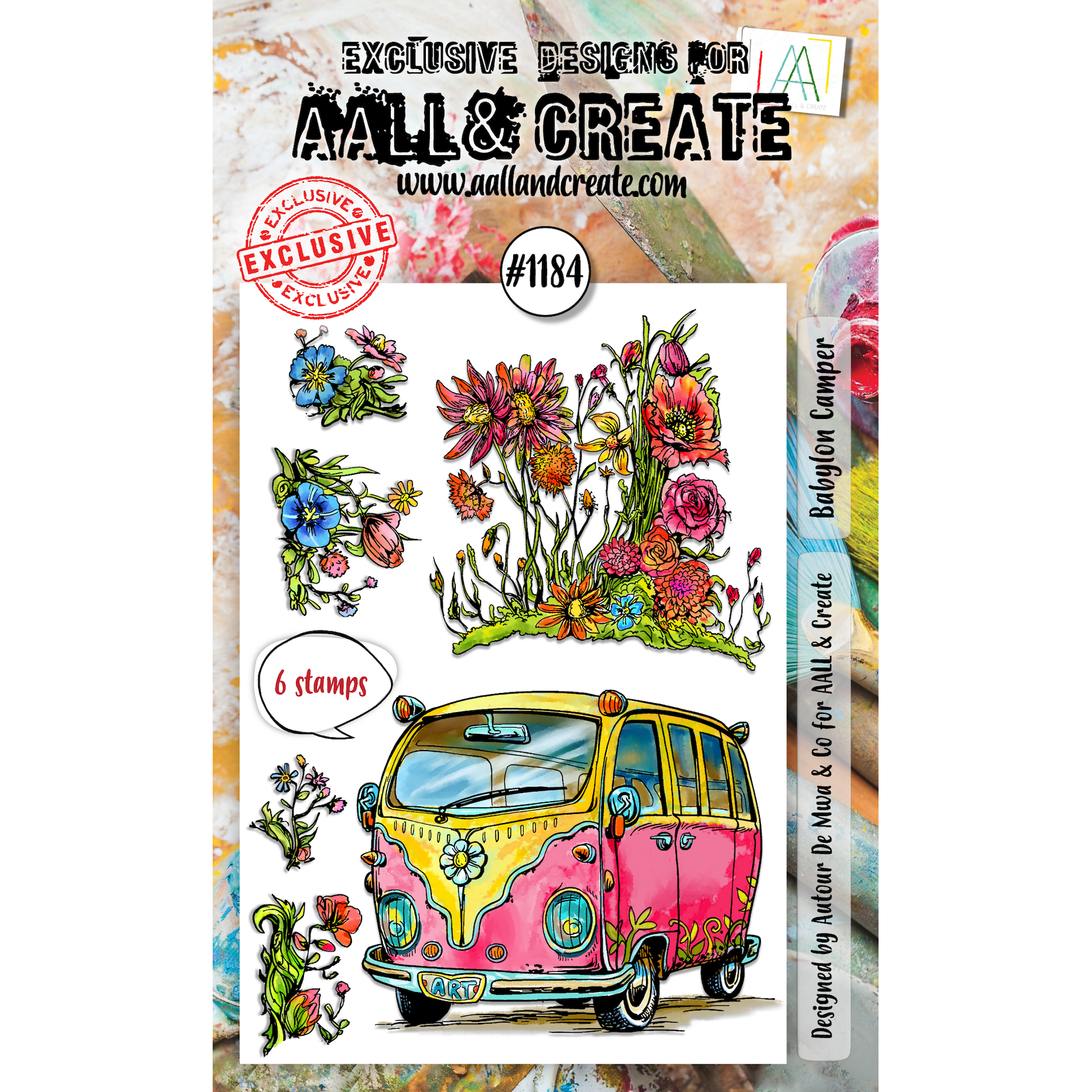 The AALL & Create Babylon Camper A6 Clear Stamps, designed by Autour De Mwa & Co. as part of the Seaside Serenade Collection, offer a charming and whimsical addition to your crafting projects. Measuring 6 x 4 inches, this deeply etched photopolymer clear stamp set comprises 6 pieces. The set includes a charming bus or van, evoking a sense of adventure and wanderlust. Additionally, the set features an array of wildflowers, adding a touch of natural beauty and serenity to your creations. These stamps coordinate seamlessly with other stamps in the collection, allowing for endless creative possibilities and a and nostalgic touch to your designs.