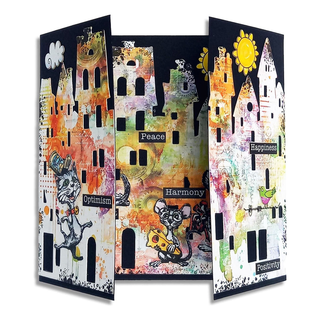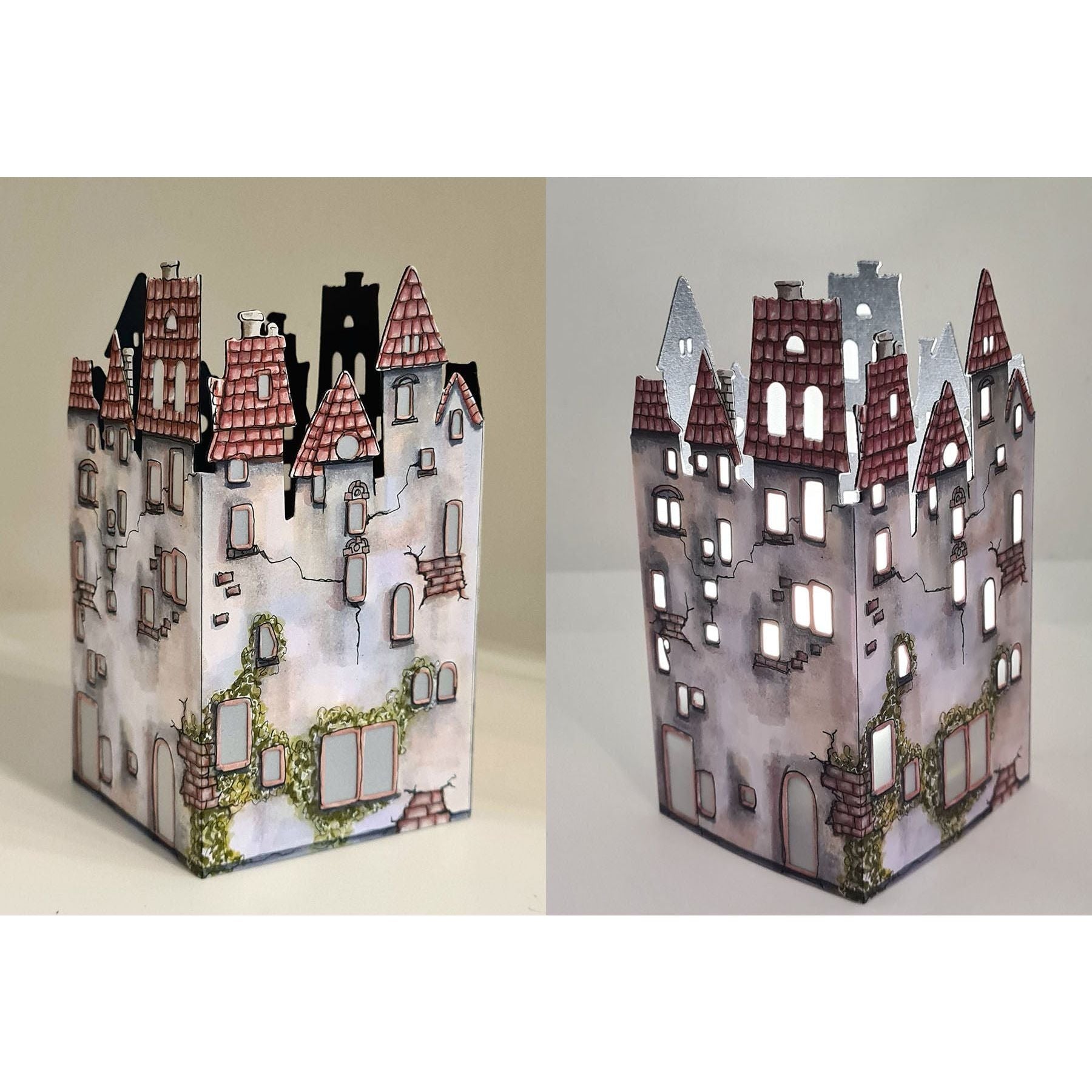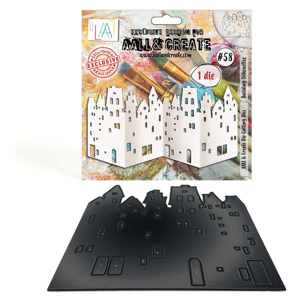 The AALL & Create Building Silhouettes Die, designed by Autour de Mwa & Co. as part of the All Hallows Eve Collection, is a versatile tool for creating detailed urban scenes. This die measures approximately 6 x 5.7 inches and is compatible with most die-cutting machines. It allows you to create rows of buildings that can be used flat or folded to become three-dimensional. The die includes intricate details like doors, windows, rooftops, and chimneys, making it perfect for adding depth and architectural interest to your crafting projects. Ideal for creating spooky Halloween scenes or any other themed project that calls for a charming cityscape.