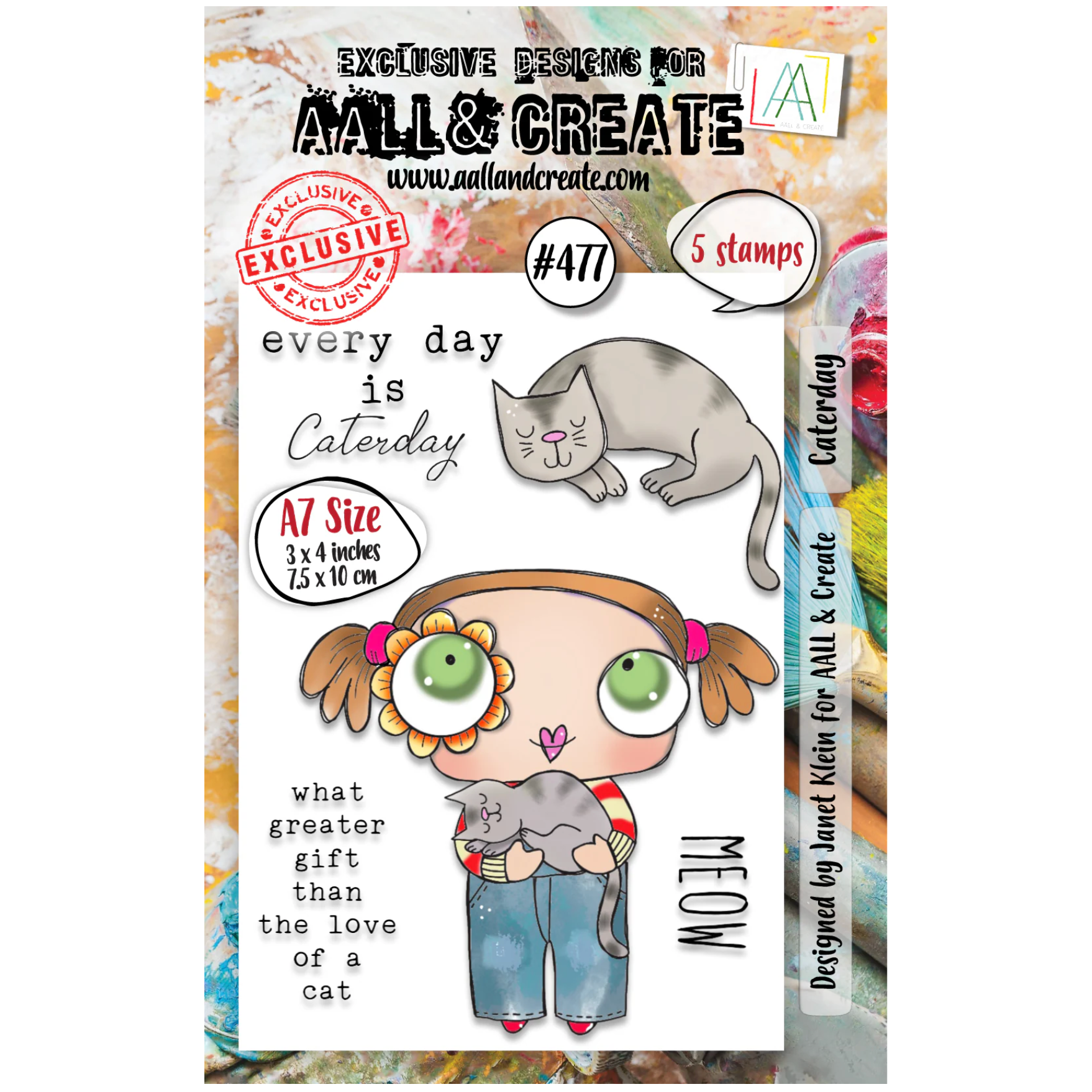 Quality deeply etched clear stamps that adhere to any clear acrylic block. 3x4 inch stamp set with 5 stamps. Little People Collection designed by Janet Klein. Girl is approximately 2.5 x 2.5 inches.