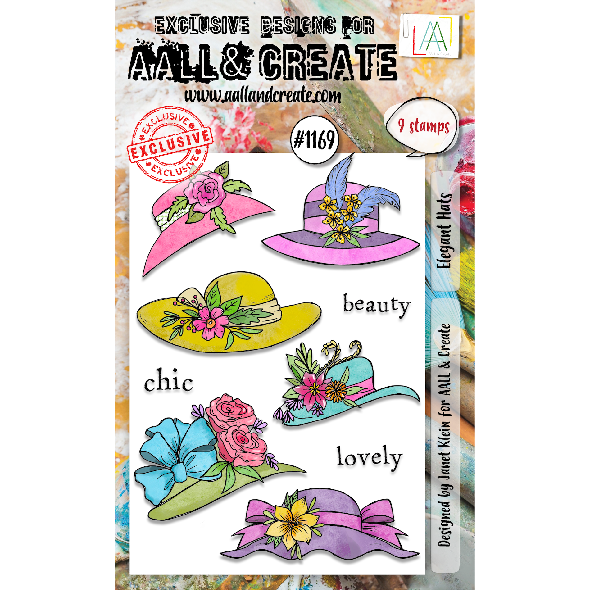 The AALL & Create Elegant Hats A6 Clear Stamps, designed by Janet Klein as part of the Spring Parade Collection, celebrate the timeless elegance of ornate headwear. Measuring 6 x 4 inches, these deeply etched photopolymer clear stamps comprise 6 pieces, each crafted to showcase the intricate details and luxurious embellishments of elegant hats. From ornate brims adorned with feathers and flowers to delicate bows and ribbons, each hat exudes a sense of sophistication and refinement. These versatile stamps offer endless creative possibilities, allowing you to mix and match the hats with various images from Janet Klein's stamp collections, creating unique and stylish compositions that capture the essence of beauty and chic. In addition to the stunning hat designs, the set includes elegant sentiments such as "beauty," "lovely," and "chic," perfect for adding a touch of sophistication and grace to your papercrafting projects.