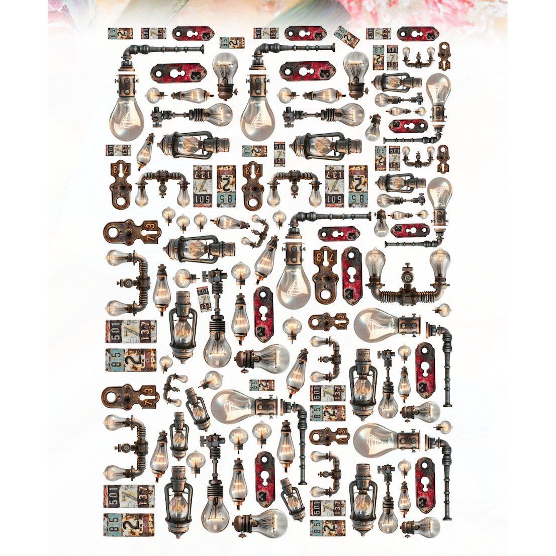 The AALL & Create Halo Haze A6 Ephemera Die-Cuts, designed by Bipasha Bk for the Steampunk Essentials Collection, are perfect for adding a grungy, industrial touch to your projects. This pack measures approximately 4 x 6 inches and includes 139 die-cut pieces crafted from high-quality 280gsm ephemera paper. The designs feature an array of steampunk-inspired elements, including lightbulbs, grungy pieces of license plates, lanterns, rusty hinges, keyholes, and more. These die-cuts are ideal for creating unique and textured steampunk-themed crafts.