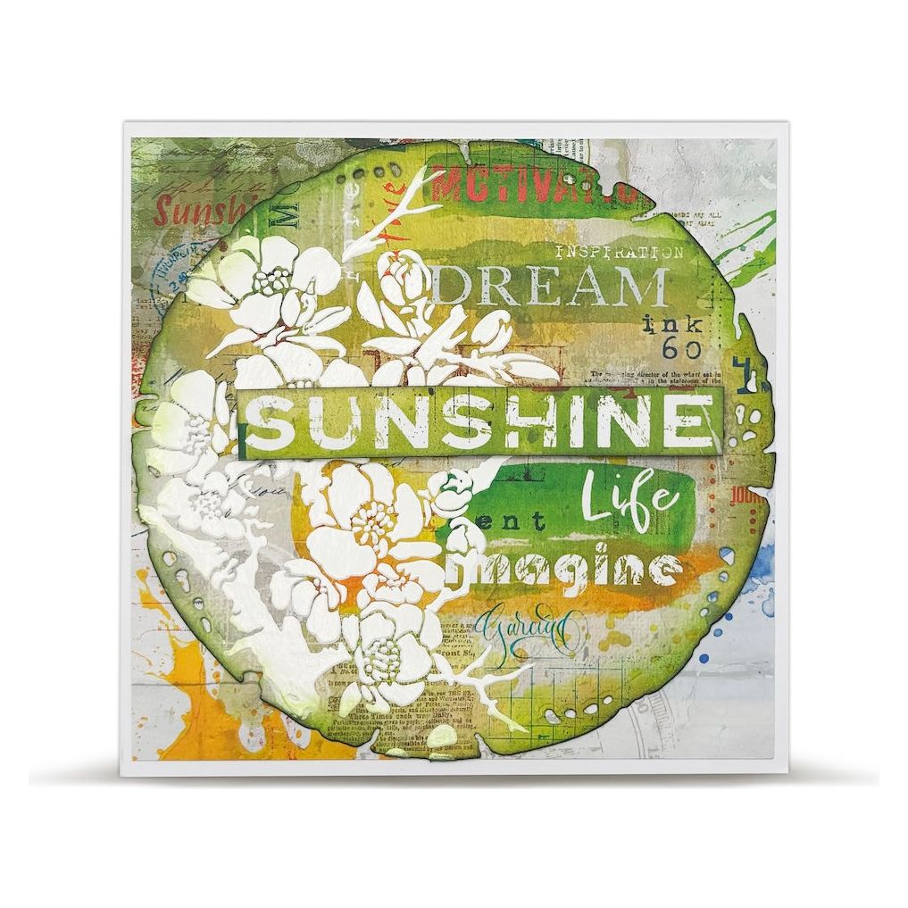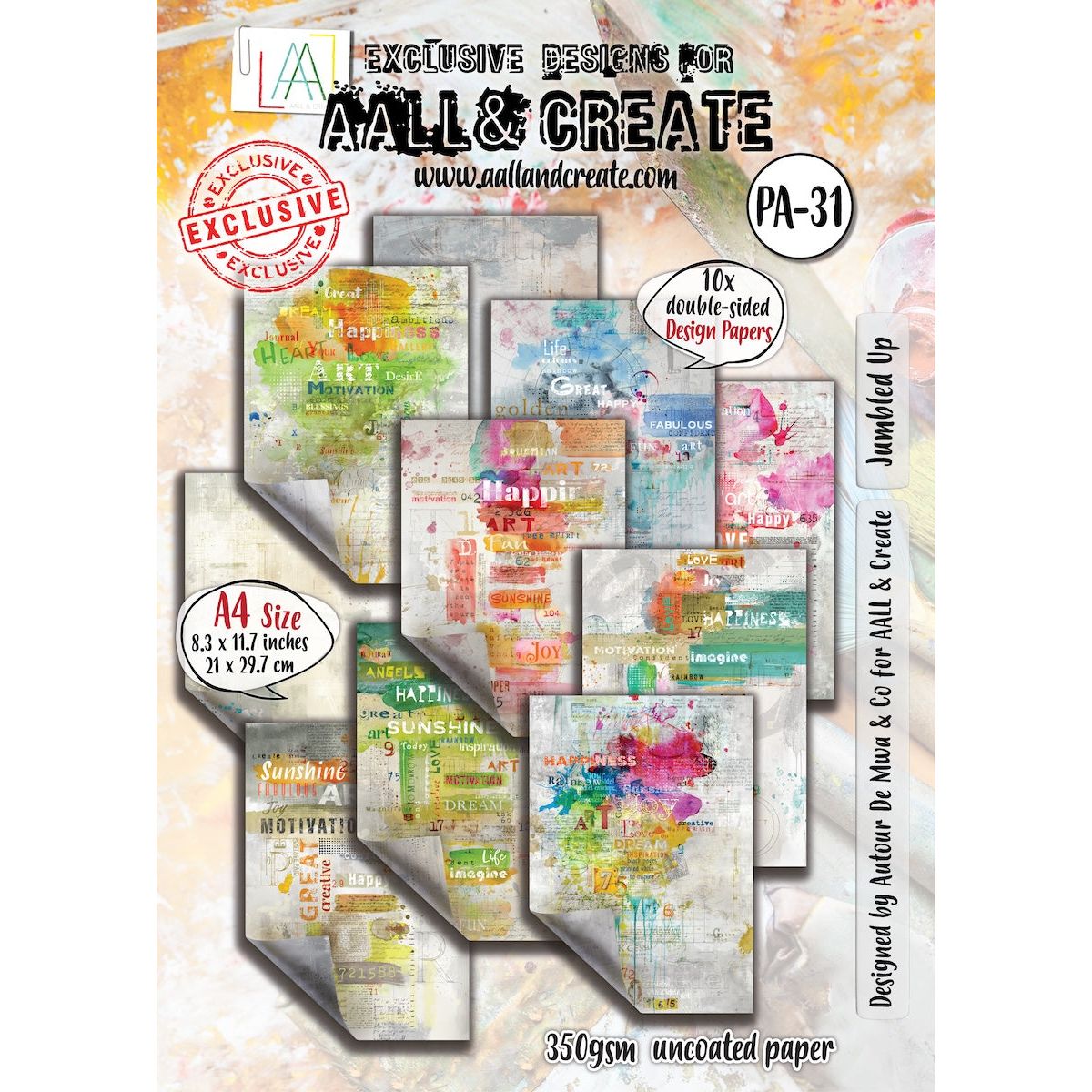AALL & Create Sketch Streams A5 Design Paper, designed by Autour De Mwa & Co. for the Artful Impressions Collection, brings a vibrant charm to your creative projects. This pack includes 10 double-sided heavyweight (350gsm) uncoated sheets, each measuring approximately 5.8 x 8.3 inches (148 x 210mm). The designs feature artistic collages of handwritten text, coffee rings, ledger numbers, bold splashes of yellow, green, blue, and pink, along with scattered words like "Happiness," "Rainbow," "Love," "Sunshine," and "Art."