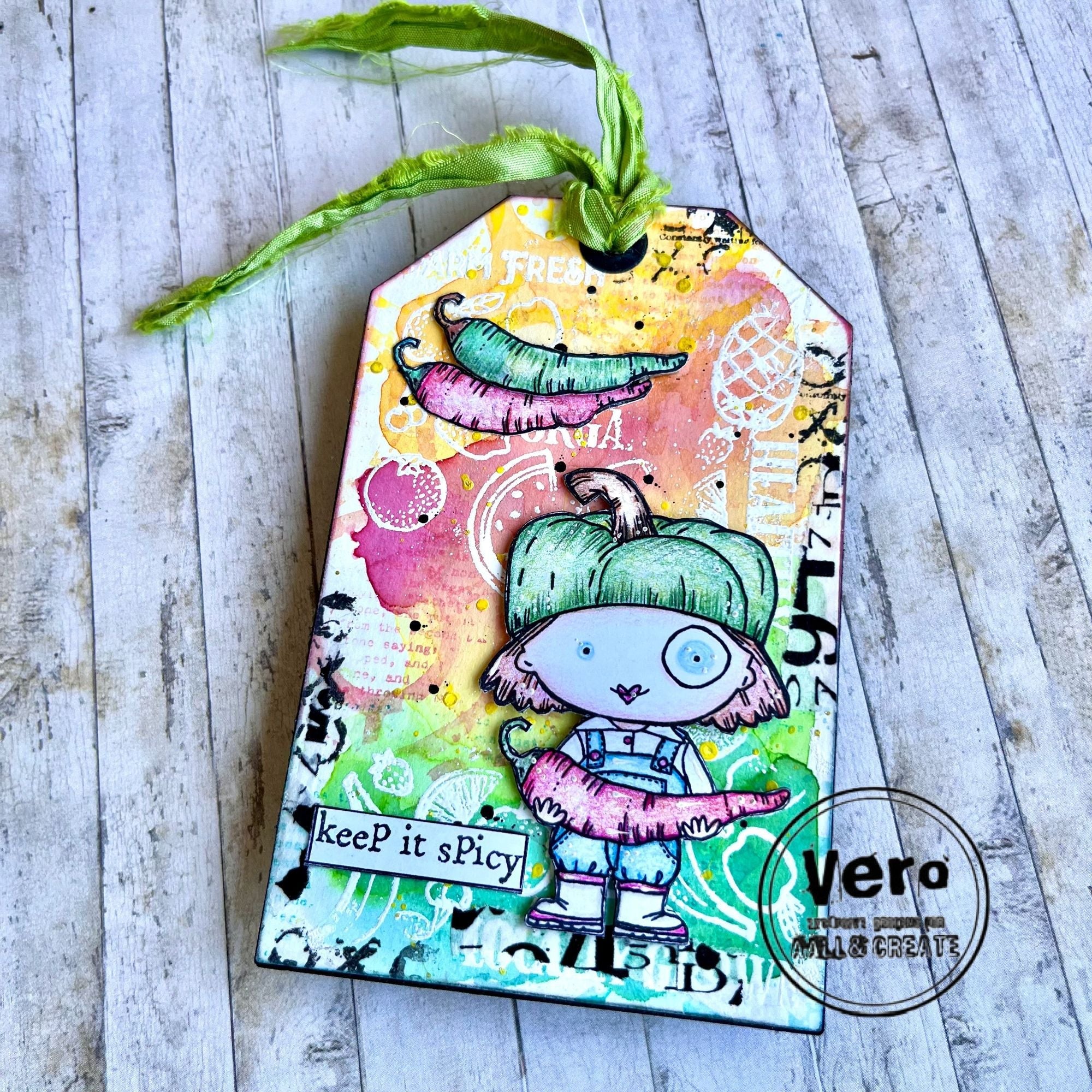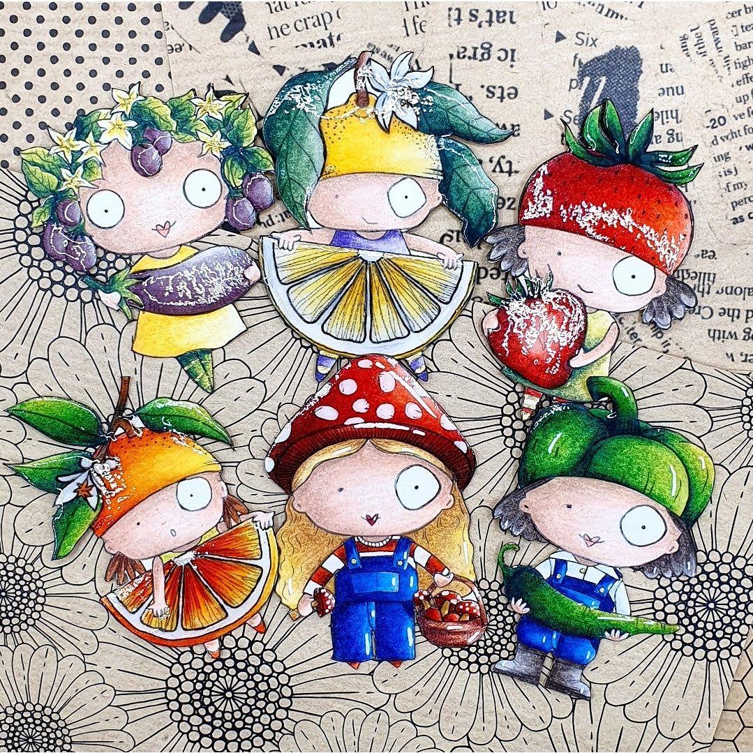 AALL & Create Pepper A7 Clear Stamps, part of the On the Farm Collection designed by Janet Klein, are a creative addition to your crafting projects. This clear, etched photopolymer stamp set measures 3x4 inches and comprises 4 pieces. Within this set, you'll find an endearing boy dressed in overalls, sporting a pepper-top hat, and holding a Chile pepper. The set also includes the phrase "Keep it spicy" and a whimsical culinary quote, "The recipe called for salt, parsley, and a sprinkle of pepper." Additionally, it features a concise definition: "Pepper (pep-er). Noun. 1. A hot-tasting condiment from dried peppercorns used as a spice to flavor foods. 2. A woody climbing vine with berry-like fruit, that dries to black or white peppercorns. 3. Any plant of the pepper family. Verb. 4. To cover or fill in a scatter formation. 5. To sprinkle or season (food)." These stamps are perfect for adding a touch of culinary zest to your creative projects.