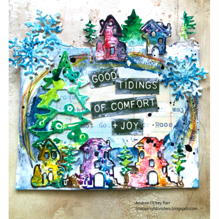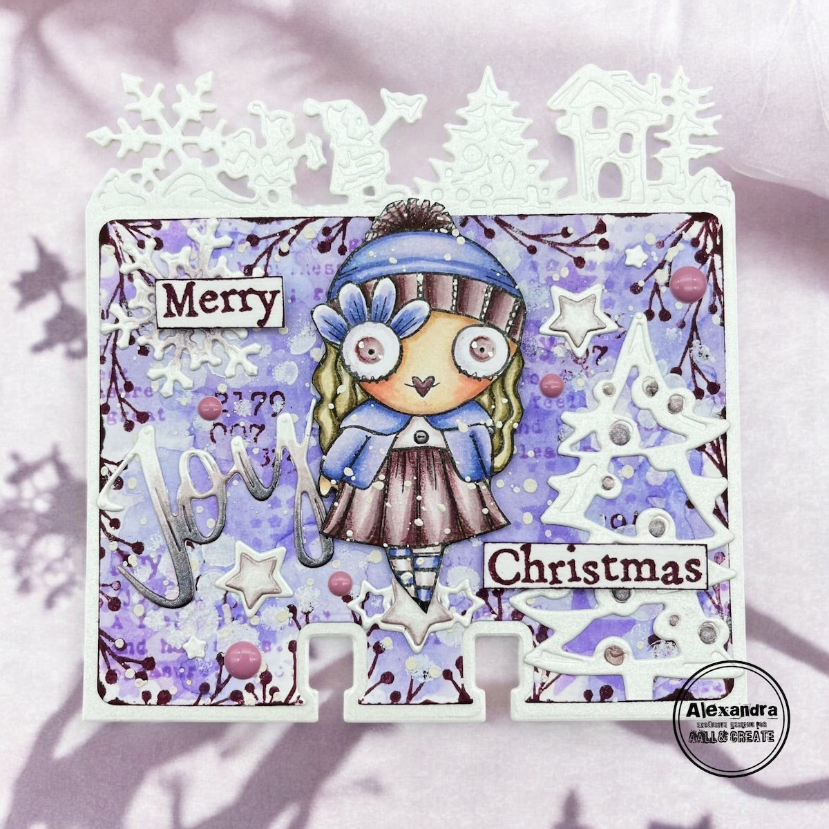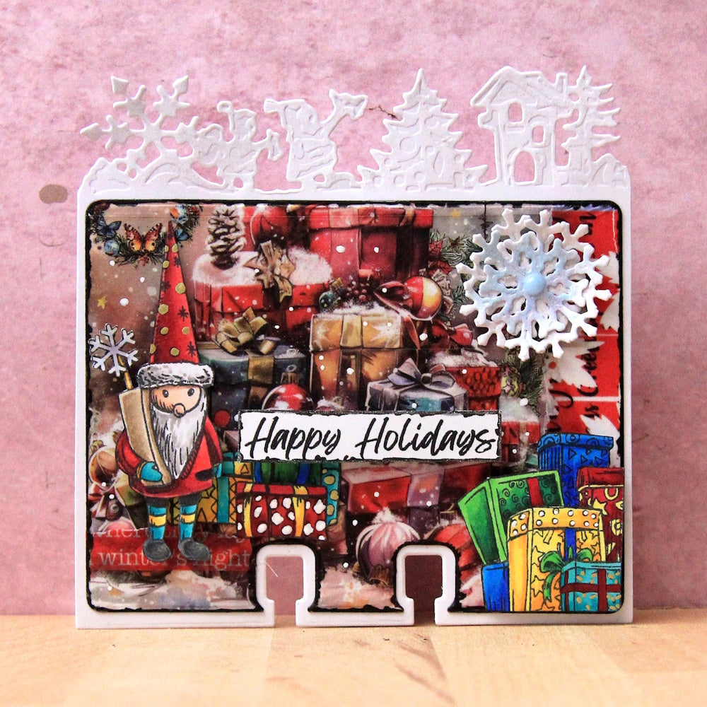 The AALL & Create Snowland Dies, designed by Autour De Mwa & Co, are wafer-thin MemoryDex dies perfect for winter and holiday-themed crafting. This set includes 6 versatile dies, with sizes ranging from the largest approximately 4.09 x 4.09 inches to the smallest 1.14 x 1.18 inches. The designs feature two rectangles, one bordered with snowy trees, a house, snowflakes, and elves, both with MemoryDex notches at the bottom. The set also includes additional winter elements such as more houses, trees, a decorated Christmas tree, a snowflake, and a reindeer. These dies are ideal for creating festive MemoryDex cards and work great with the MemoryDex Card Holder Box bx-mdb.