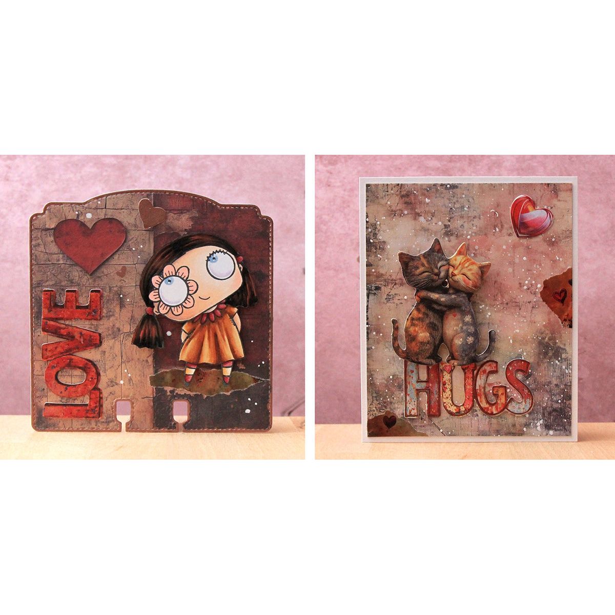 • Sepia Sweethearts Ephemera Die Cuts 83: A collection of 94 die cuts, including hearts, stars, dogs, cats, envelopes, and the words "Hugs" and "Love."