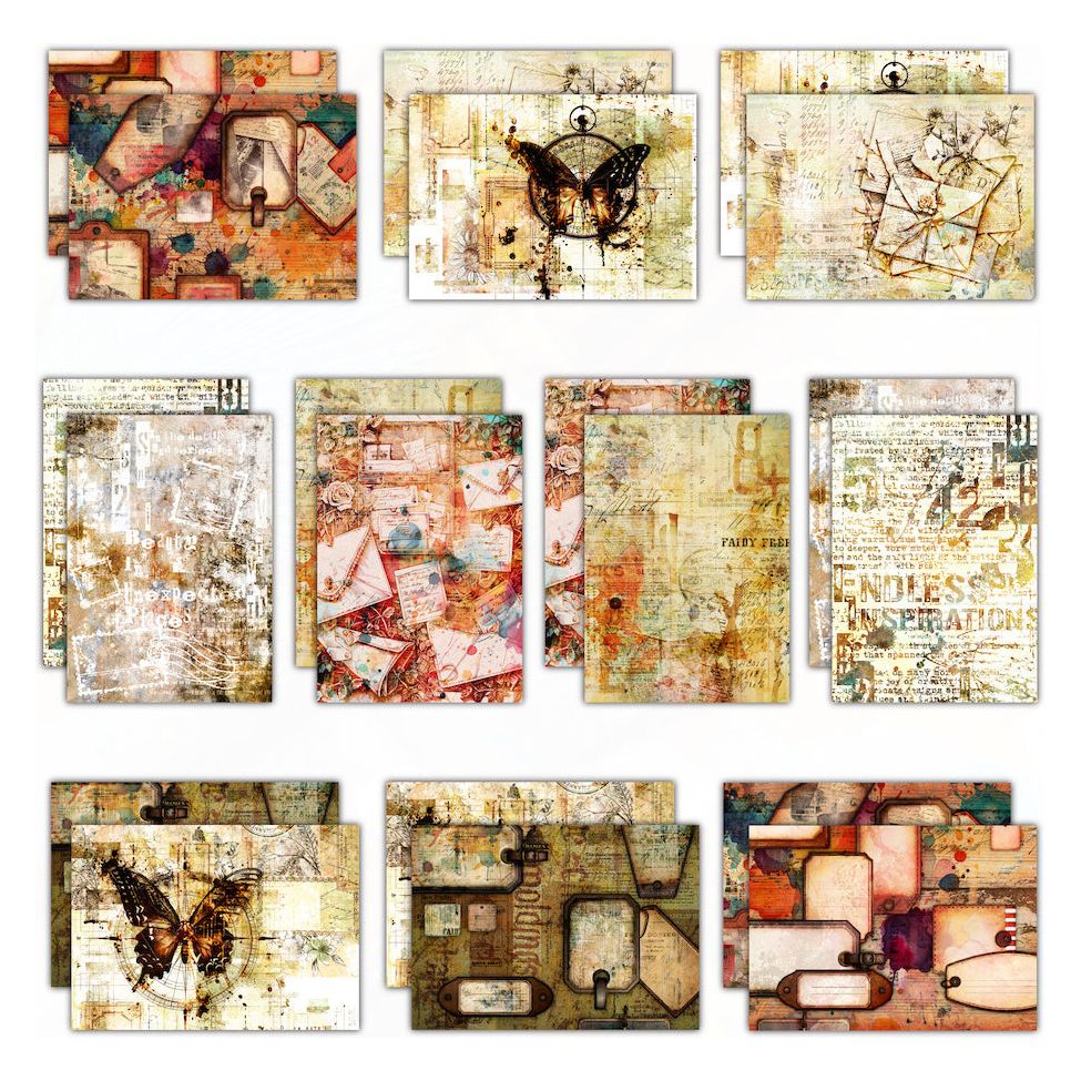 The AALL & Create Wanderlust Whispers A5 Design Paper, designed by Autour De Mwa & Co. for the Nautical Wings Collection, includes 10 double-sided heavyweight (350gsm) uncoated sheets, each measuring approximately 5.8 x 8.3 inches (148x210mm). The unique designs feature collages of letters, envelopes, postage, luggage tags, labels, writing, butterflies, words, numbers, and more, making them ideal for adding intricate details to your creative projects.