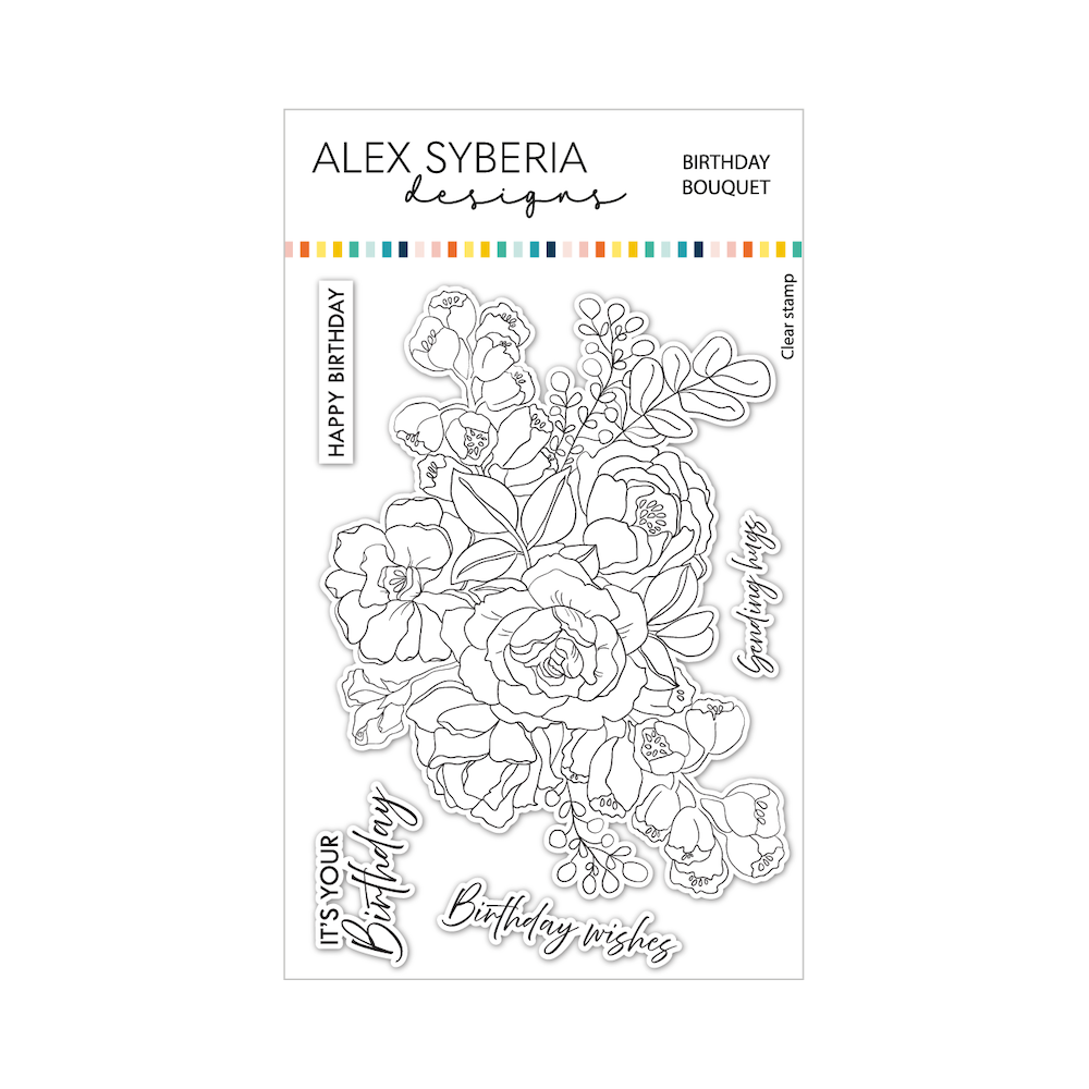 Create memorable cards and crafts for any occasion with the Alex Syberia Designs Birthday Bouquet Clear Stamp Set. This 4 x 6 inch stamp set showcases a delightful floral bouquet, perfect for adding a touch of elegance to your projects. It features four heartfelt sentiments and coordinates seamlessly with the Birthday Bouquet Die Set for precise cutting and the Birthday Bouquet Stencil Set for effortless coloring. Sentiments include,