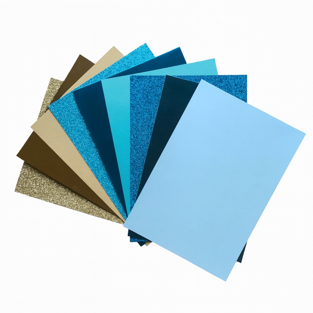 Add a luxurious splash of color to your crafting with the Golden Turquoise Mix Cardstock Pack by Alex Syberia Designs. This premium 27-sheet A4 assortment (8.25 x 11.75 inches) features three elegant finishes—Ultra Low Shed Glitter, Single-Sided Pearl, and Mirror—in a stunning palette of gold, turquoise, baby blue, and petrol tones.
