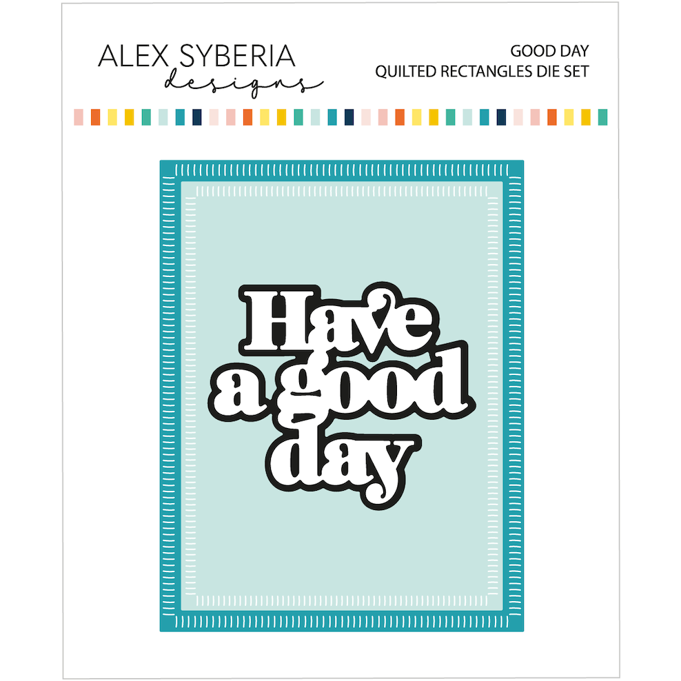 The Good Day Quilted Rectangles Die Set from Alex Syberia Designs is a must-have for any cardmaker. This versatile set includes two rectangles and a 'Have a Good Day' sentiment with its shadow, perfect for adding a personal touch to any project. The larger rectangle measures 4.25 x 5.5 inches, the smaller one is 3.75 x 5 inches, and the sentiment spans approximately 3.1 x 2.7 inches. These essential dies are indispensable for various occasions, making them ideal for both cardmakers and scrapbookers looking to enhance their projects with a heartfelt message.