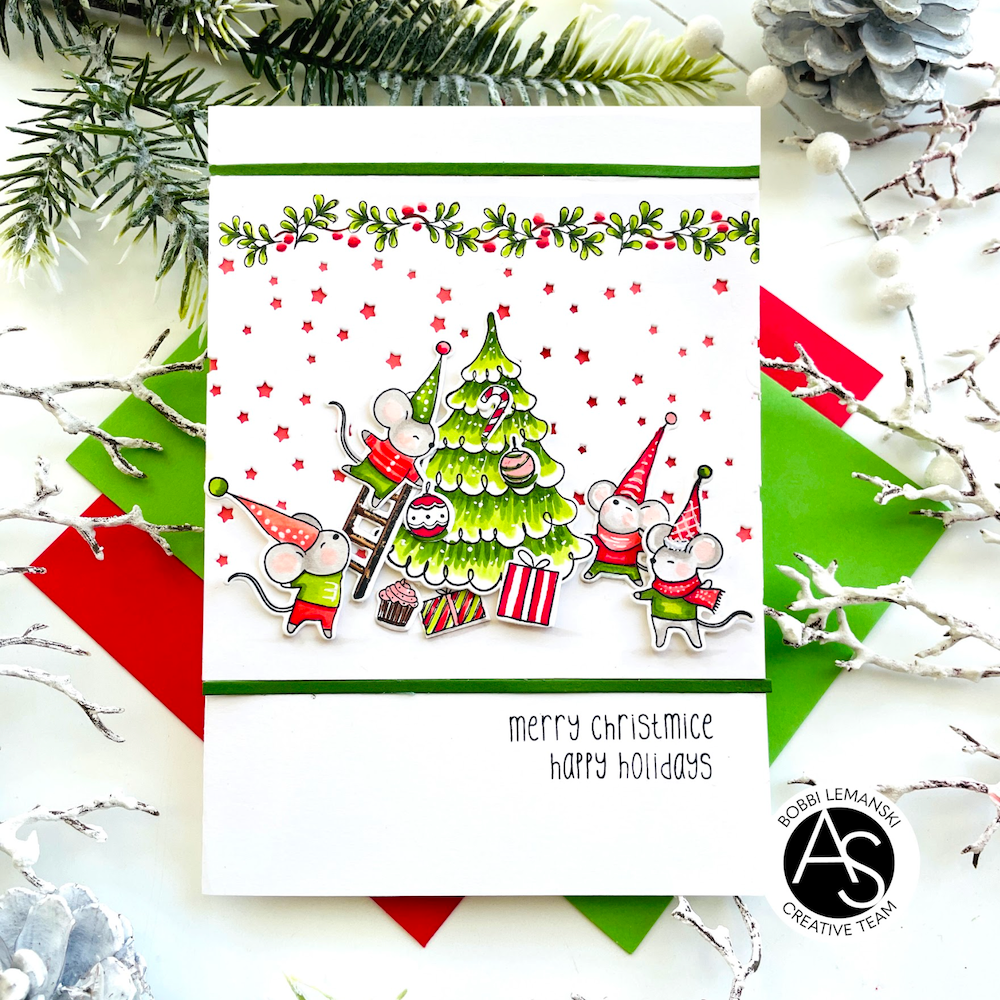 Discover the enchanting world of Alex Syberia Designs with the Merry Christmice Clear Stamp Set! In this delightful 4 x 6 inch cleat stamp collection, tiny mice take center stage, adorning a Christmas tree and orchestrating a flurry of gift-giving for a festive celebration like no other. This adorable stamp set injects a whimsical charm into your holiday crafting endeavors with sentiments including,