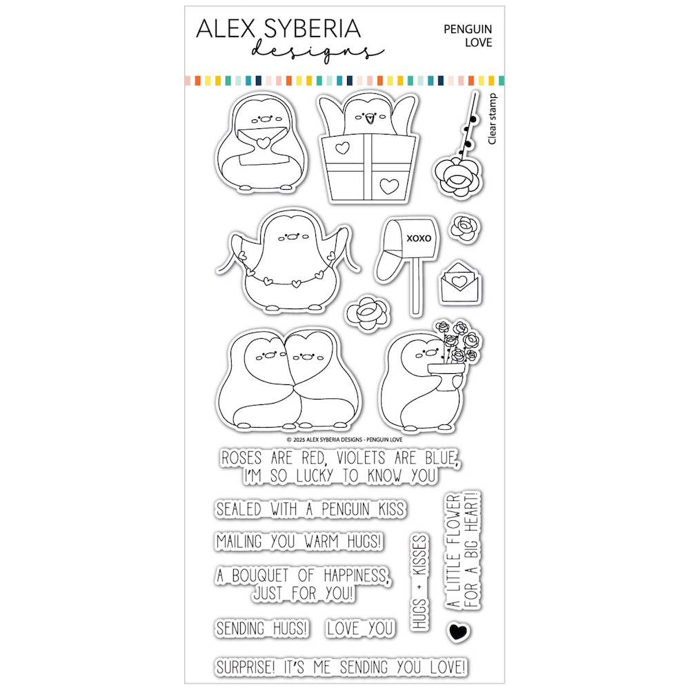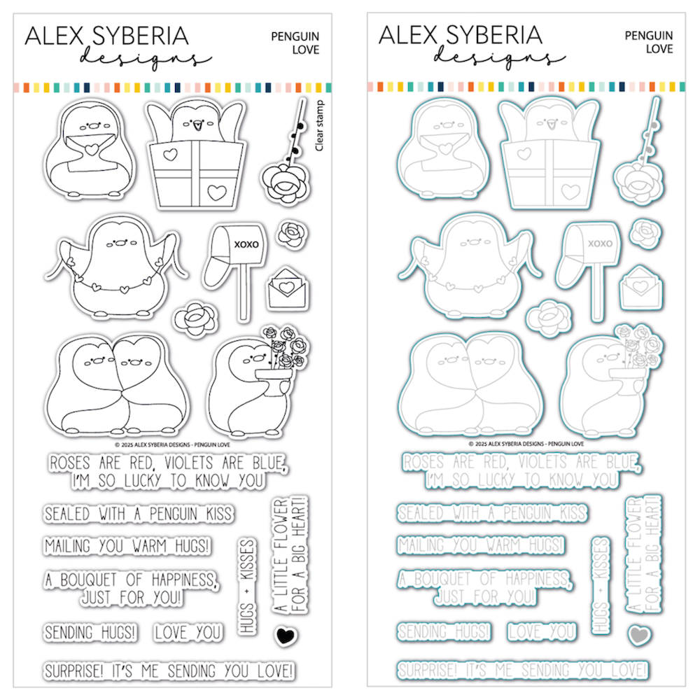 The Penguin Love Stamp and Die Bundle by Alex Syberia Designs is a delightful set for spreading love and warmth in your crafts. The Penguin Love Stamp Set, 4 x 8 inches, includes 19 playful stamps featuring adorable penguins, sweet sentiments, and charming decorative elements. Sentiments include,
