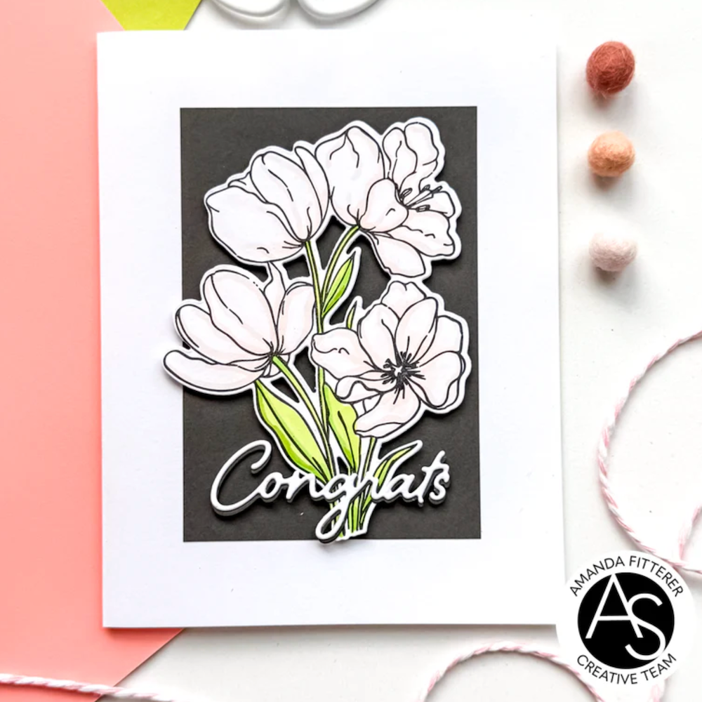 The Tulips in Bloom Die Set by Alex Syberia Designs includes coordinating dies that perfectly match the images in the Tulips in Bloom Stamp Set. With dies for the tulip bouquets, bow, butterflies, and more, this set makes cutting your stamped images fast and precise. Designed for use with your die-cutting machine, it’s ideal for adding dimension and a polished finish to your spring-themed projects.