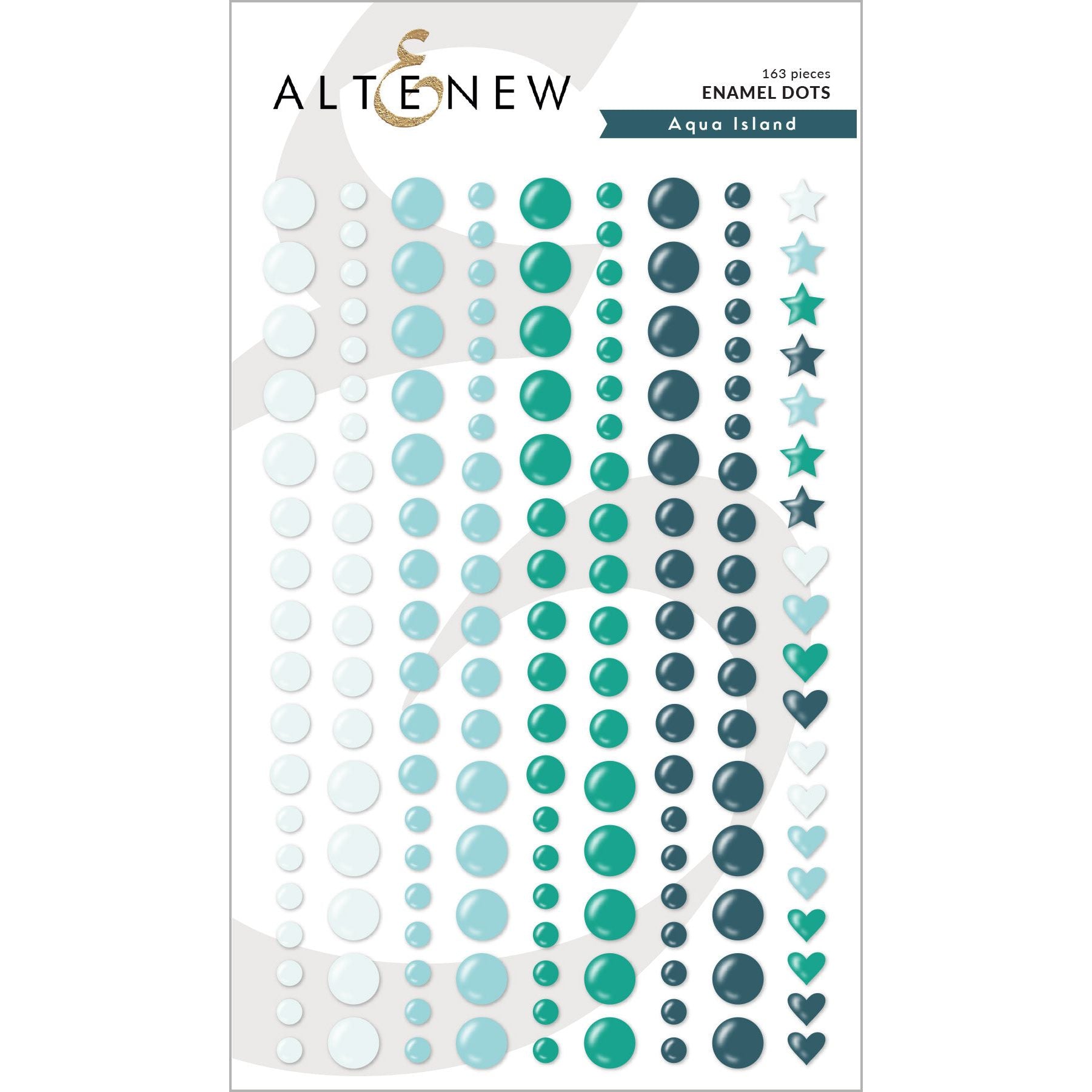 The Altenew Aqua Island Enamel Dots are the perfect adhesive embellishments to coordinate with the Aqua Island Fresh Dye Ink Set. These enamel dots are ideal for adding a decorative touch to your photos, planners, journals, scrapbooking, or card-making projects. The versatile set includes 163 enamel stickers, featuring 144 dots in three different sizes, along with seven stars and twelve hearts, all in four vibrant colors.