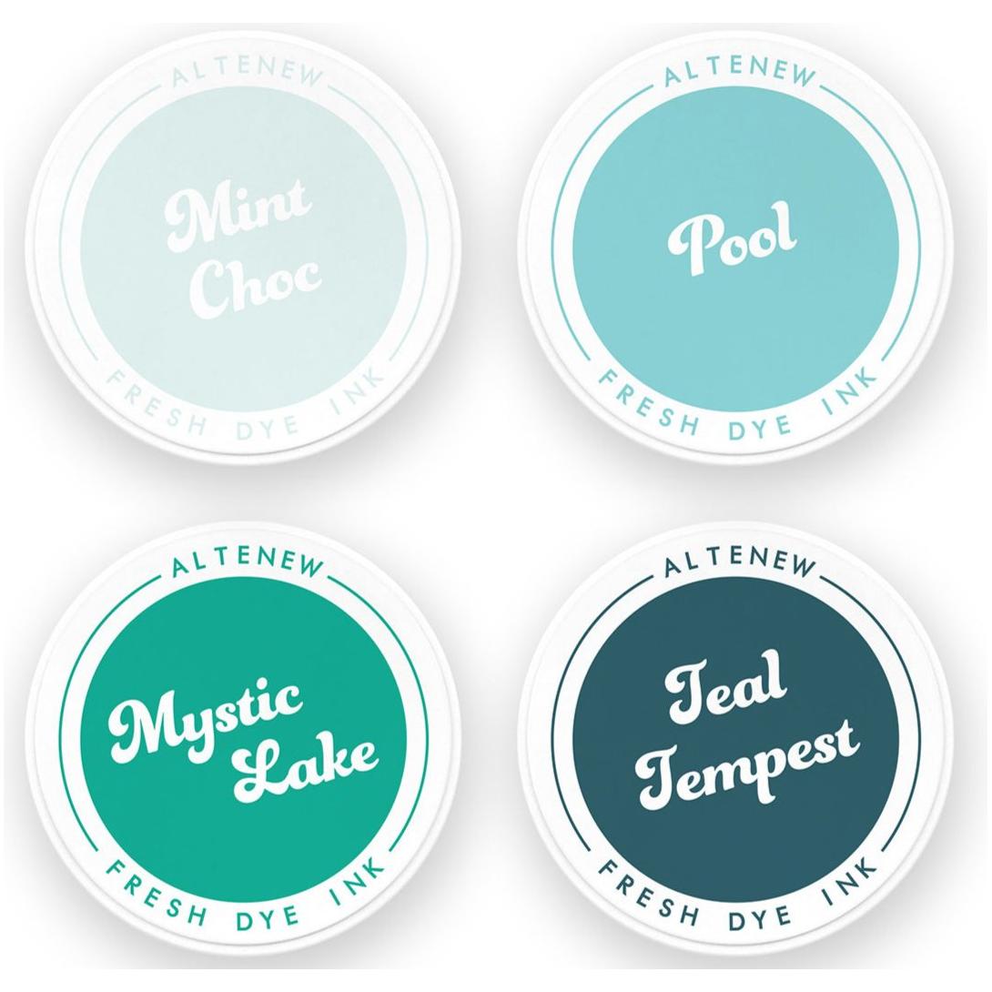Altenew's ink color families are designed to eliminate the guesswork from layered stamping. Each family features a range of shades from light to dark, ensuring superior layering results. The Aqua Island set includes the colors Mint Choc, Pool, Mystic Lake, and Teal Tempest. Each set contains four 2.75-inch round felt dye ink pads. These water-based, fast-drying inks provide uniform coverage, vibrant impressions, and feature a twist-off lid. The pads are refillable, ergonomically designed, and made in the USA.