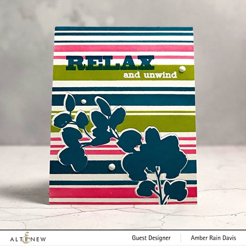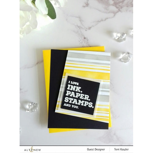 Place the stencil over the project area and secure it with washi tape, painter's tape, or any other repositionable adhesive. Add patterns to your project by blending inks, spraying mists, applying embossing paste, or adding glitter. Gently pull the stencil off from the project area to see the result.