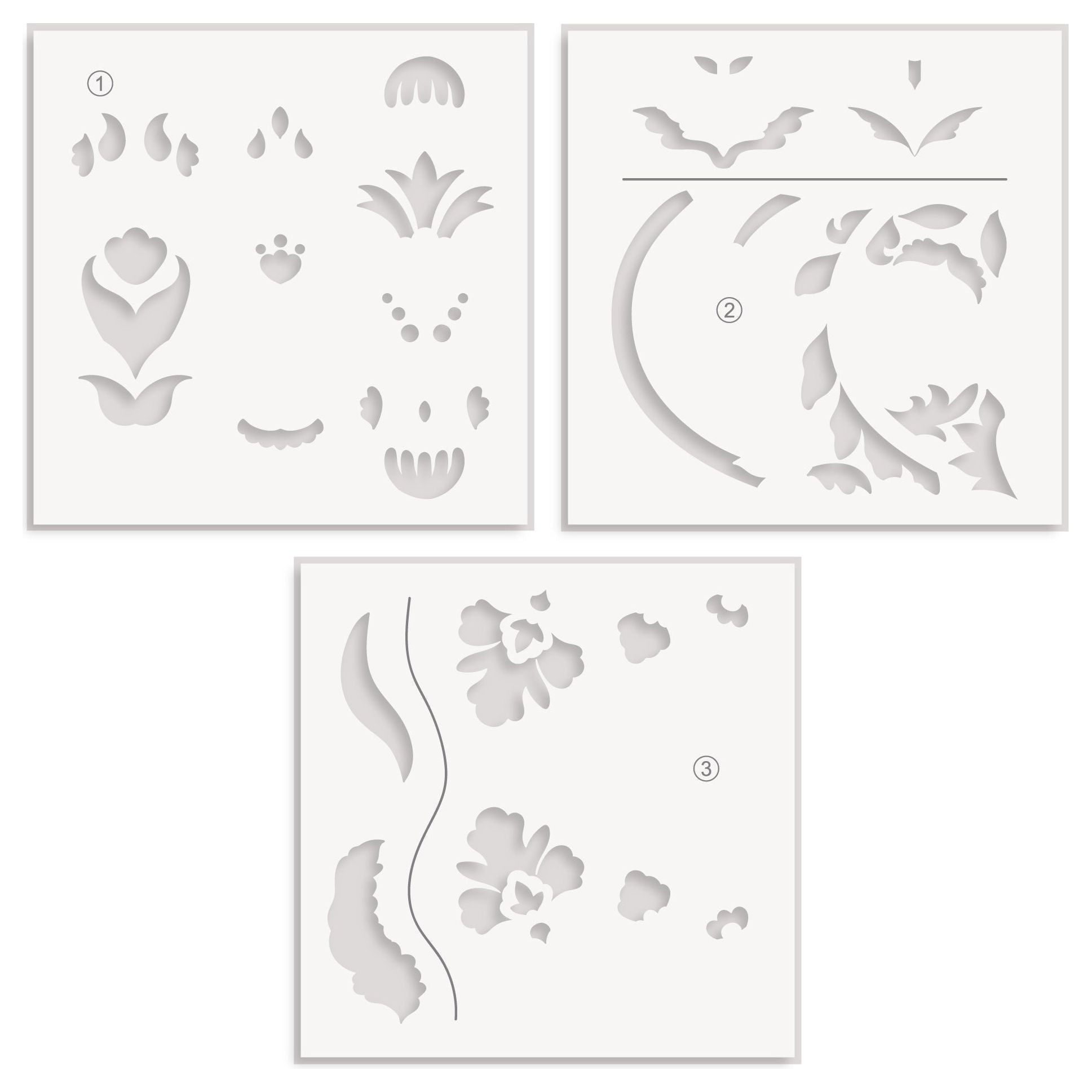 This set includes three coloring stencils, each measuring 6 x 6 inches. The stencils feature elegant designs that complement the Blooming Motifs 3D Embossing Folder, allowing you to effortlessly bring beautiful florals to life with your choice of colors.