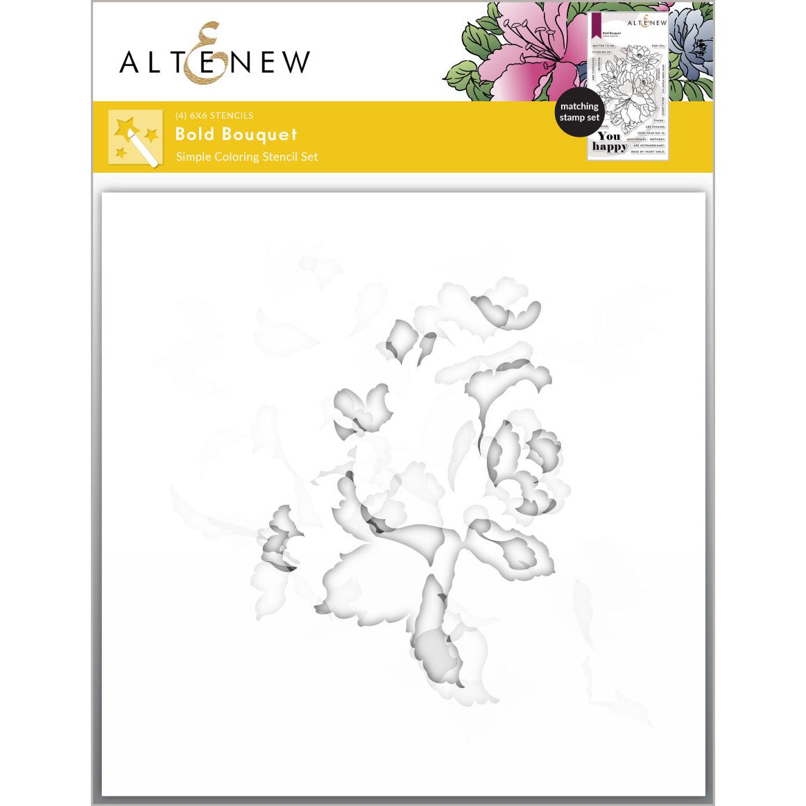 Elevate your crafting experience with the Altenew Bold Bouquet Layering Stencils. Designed to complement the Bold Bouquet Stamp Set, these coordinating stencils offer a convenient way to infuse vibrant color into your stamped images. With four 6x6 inch stencils included in this set, you can effortlessly achieve beautifully colored and layered effects on your floral designs.