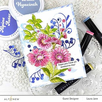 This set features two beautiful arrangements of asters, a silhouette of a branch of berries, and six heartfelt sentiments. The loosely drawn style of these star-shaped flowers makes them perfect for watercoloring!