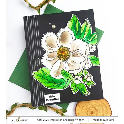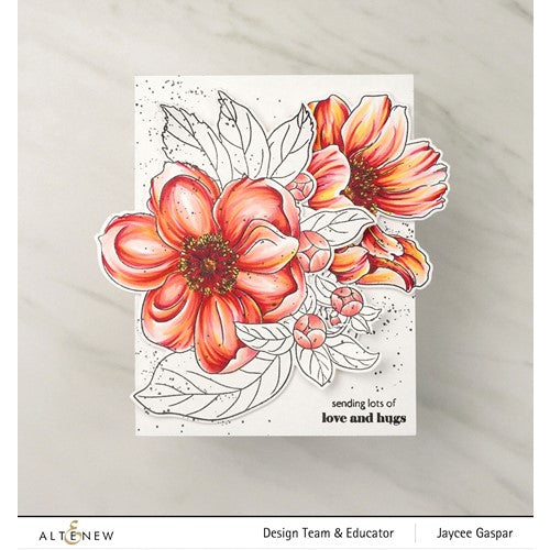 This beautiful stamp set features two large peony clusters that will add a stunning focal point to your paper crafting projects. Each cluster showcases delicate peonies surrounded by leaves and buds. The large scale of these flowers will make them a delight to color. Stamp any of the twelve coordinating sentiments celebrating beauty and hope to complete your project.