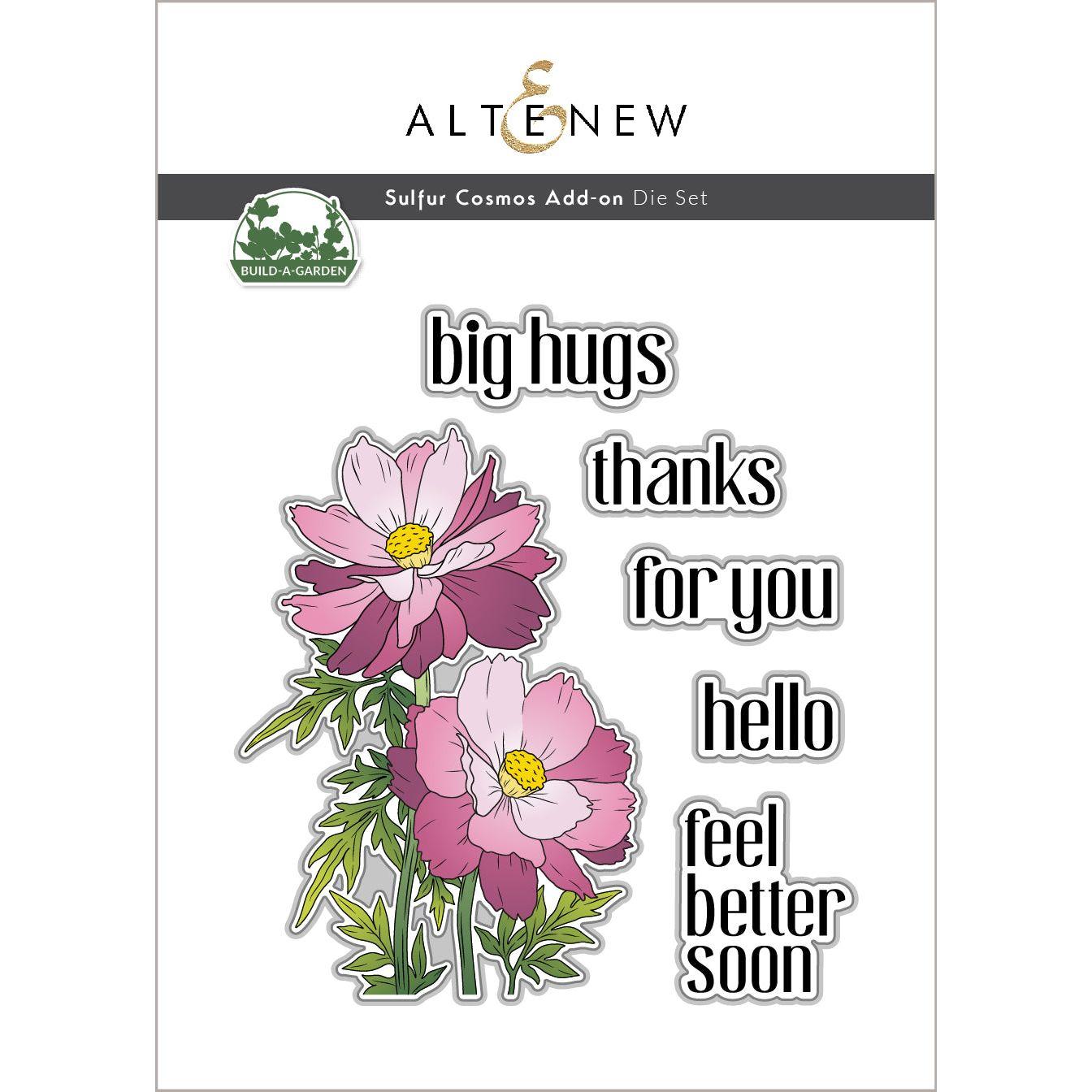 The Build-A-Garden: Sulfur Cosmos Add-On Die Set coordinates with the stamp set to cut out the floral arrangement and includes 5 dies for some of the sentiments. These dies work great with most die-cutting machines, making it easy to create quick and unique projects.
