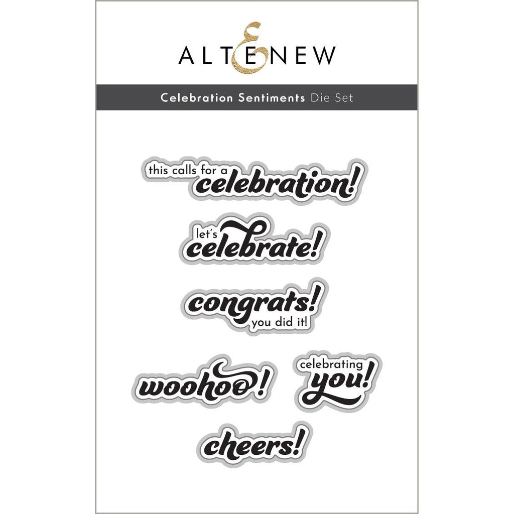 The Celebration Sentiments Die Set features six delightful sentiments, each crafted in a fun combination of fonts. Whether it's birthdays, anniversaries, graduations, or any other occasion worth celebrating, these sentiments are just the right size for cards and will become your go-to choice. The set seamlessly pairs with the press plate and effortlessly cuts out all sentiments included.