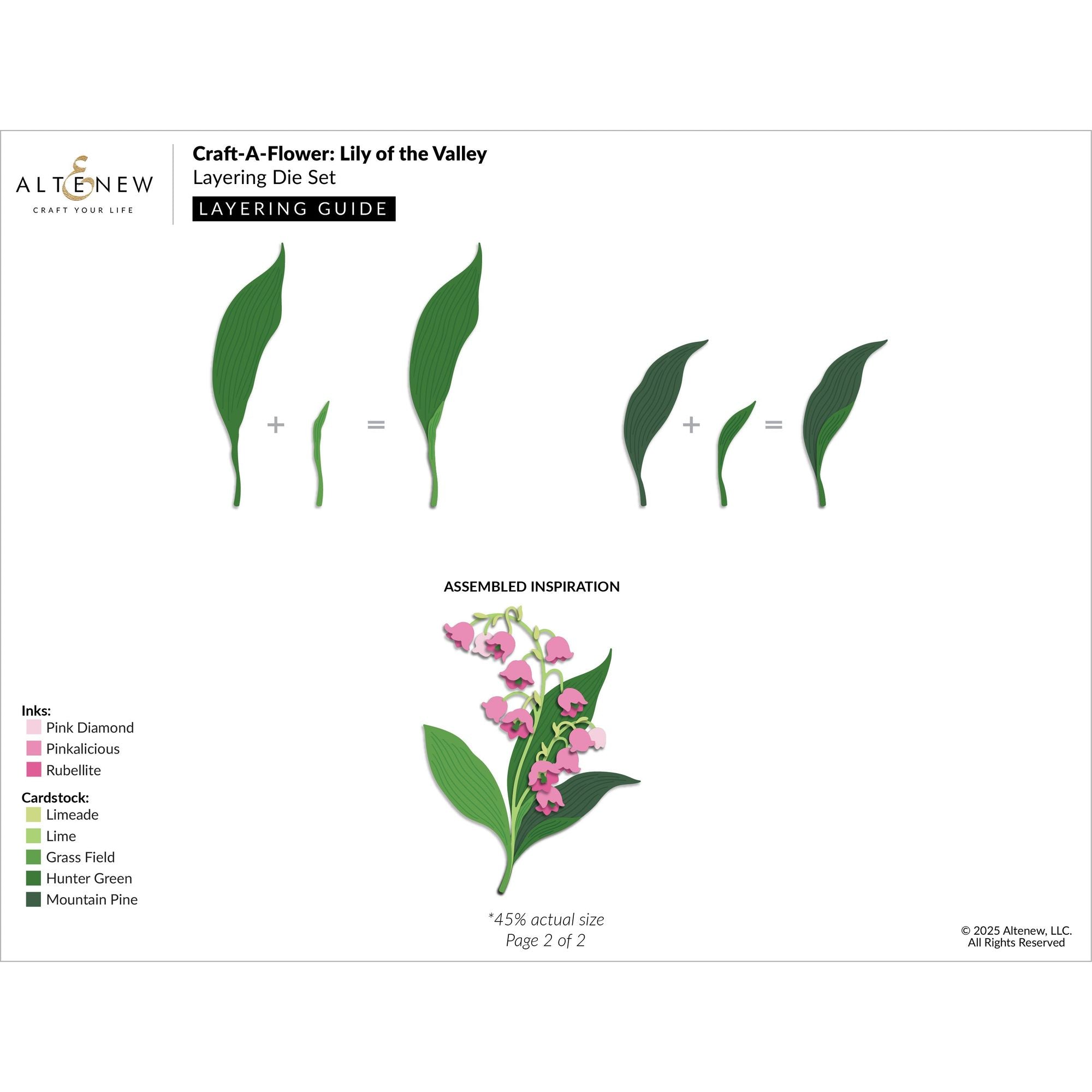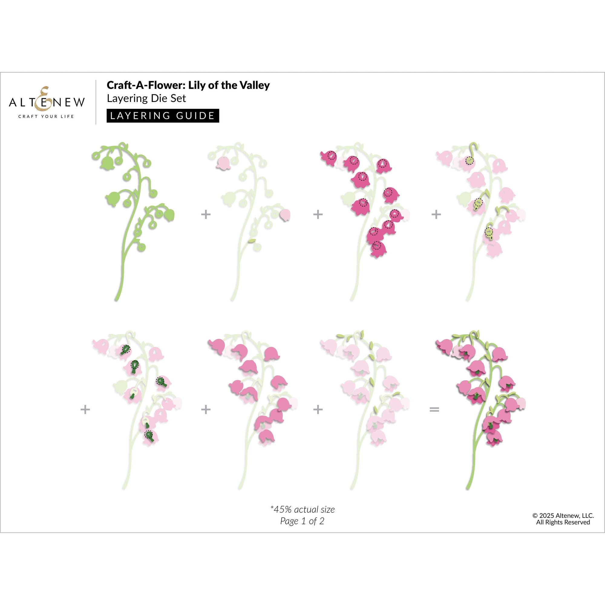 The Altenew Craft-A-Flower: Lily of the Valley Layering Die Set captures the graceful elegance of this timeless bloom. With 13 dies, you can create a beautifully layered floral arrangement featuring delicate bell-shaped flowers, elegant stems, and three large, intricately detailed leaves that add depth and balance to your design. Perfect for cards, scrapbook pages, and spring-themed projects, this set brings natural charm and sophistication to your paper crafting.