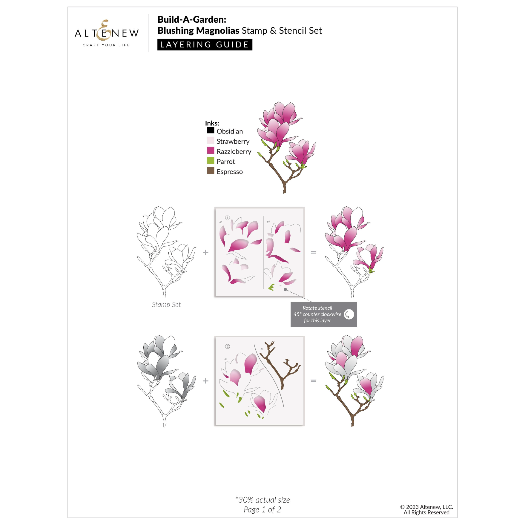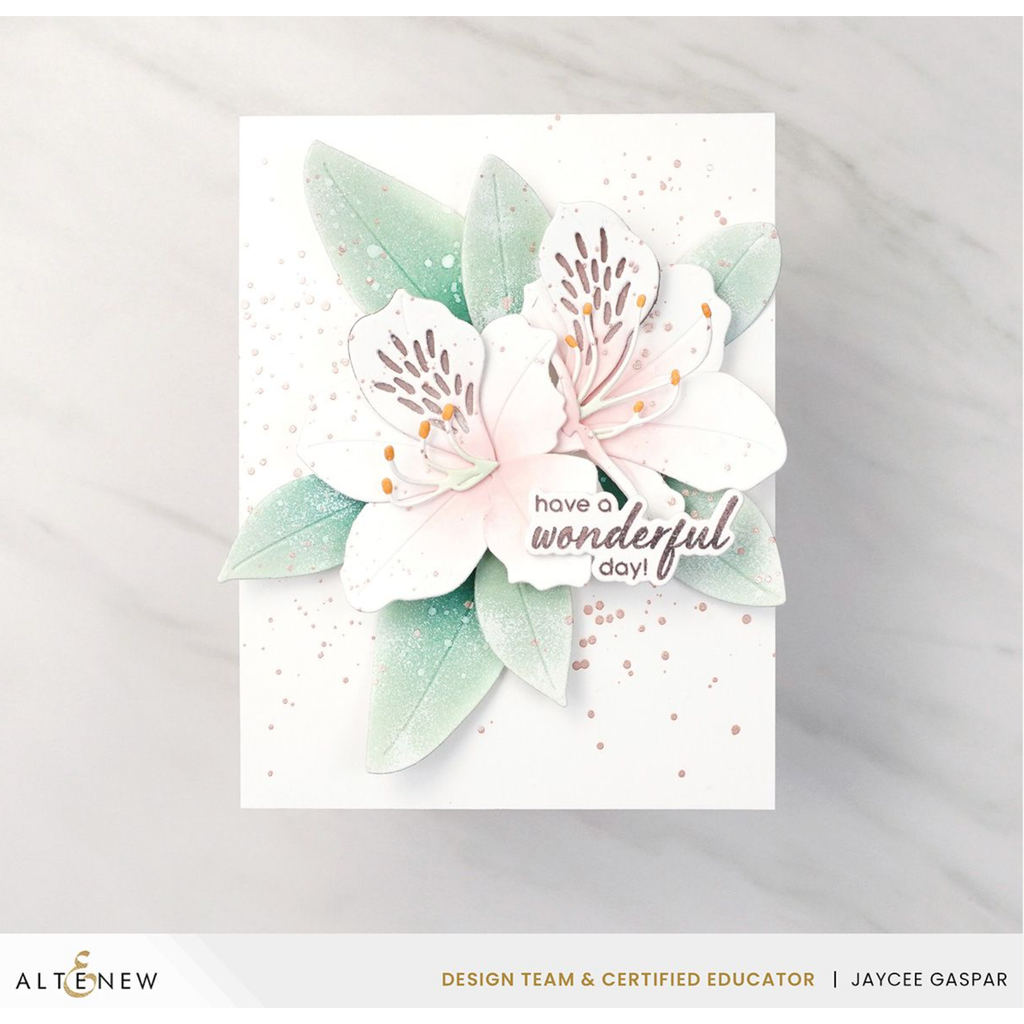 Die Dimensions: Front-Facing Rhododendron: 2.2 x 2.6 inches ▪ Side-Facing Rhododendron: 1.9 x 2.8 inches ▪ Leaf 1: 1.1 x 2.1 inches ▪ Leaf 2: .9 x 1.8 inches ▪ Leaf 3: .8 x 1.5 inches