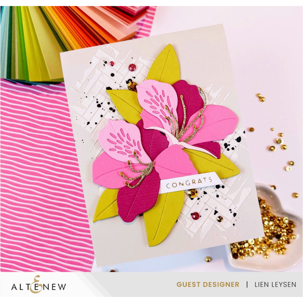 The unique Craft-A-Flower: Rhodendron Die Set is designed to help you achieve stunning layered designs inspired by the beauty of rhododendron flowers. It features two intricate rhododendrons along with three accompanying leaves. Let your creativity bloom! There are 17 dies in this set.